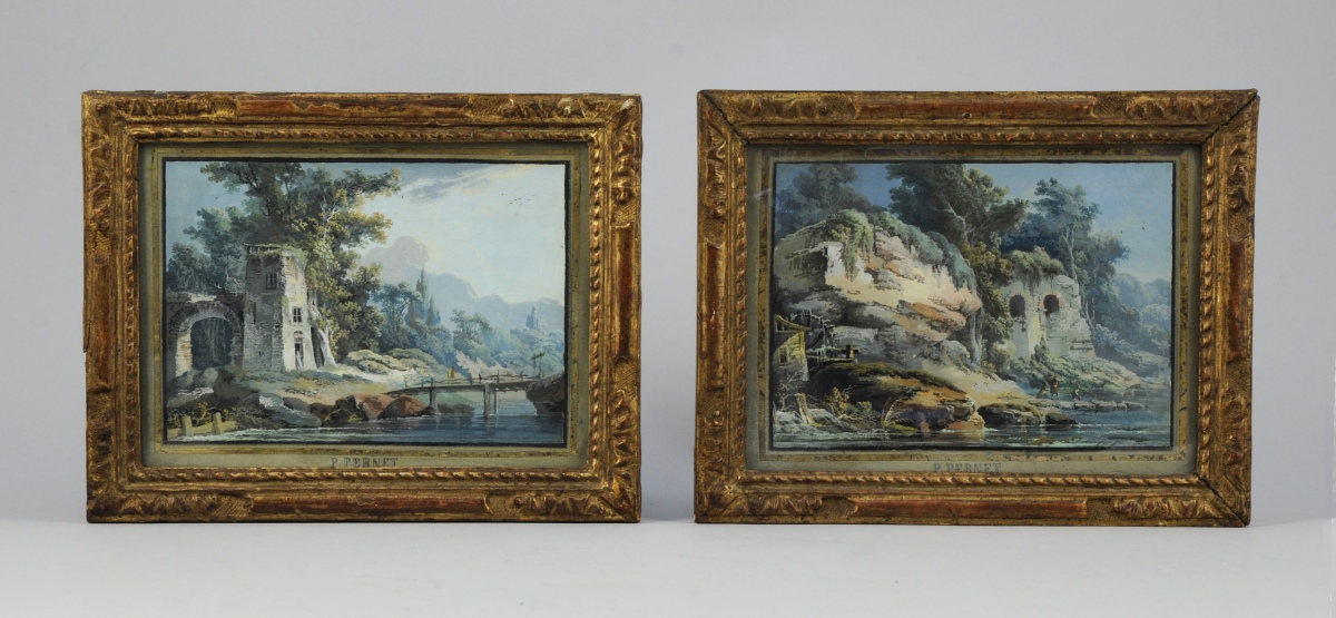 Paire de gouaches, signée pour l'une en bas à droite J (?) A Pernet.