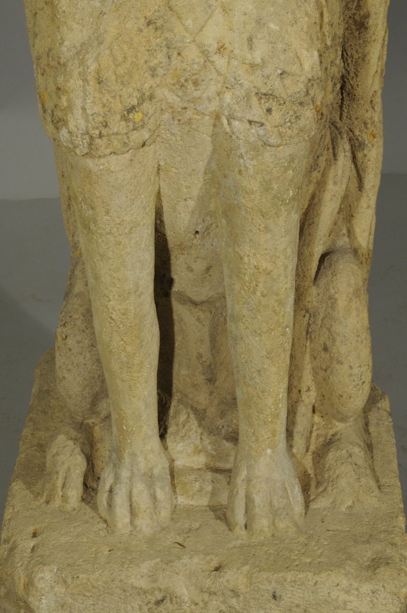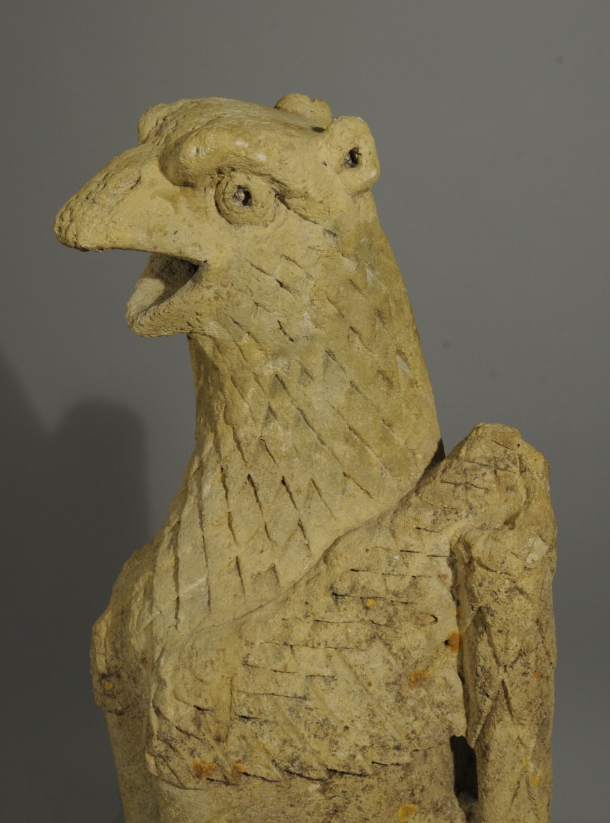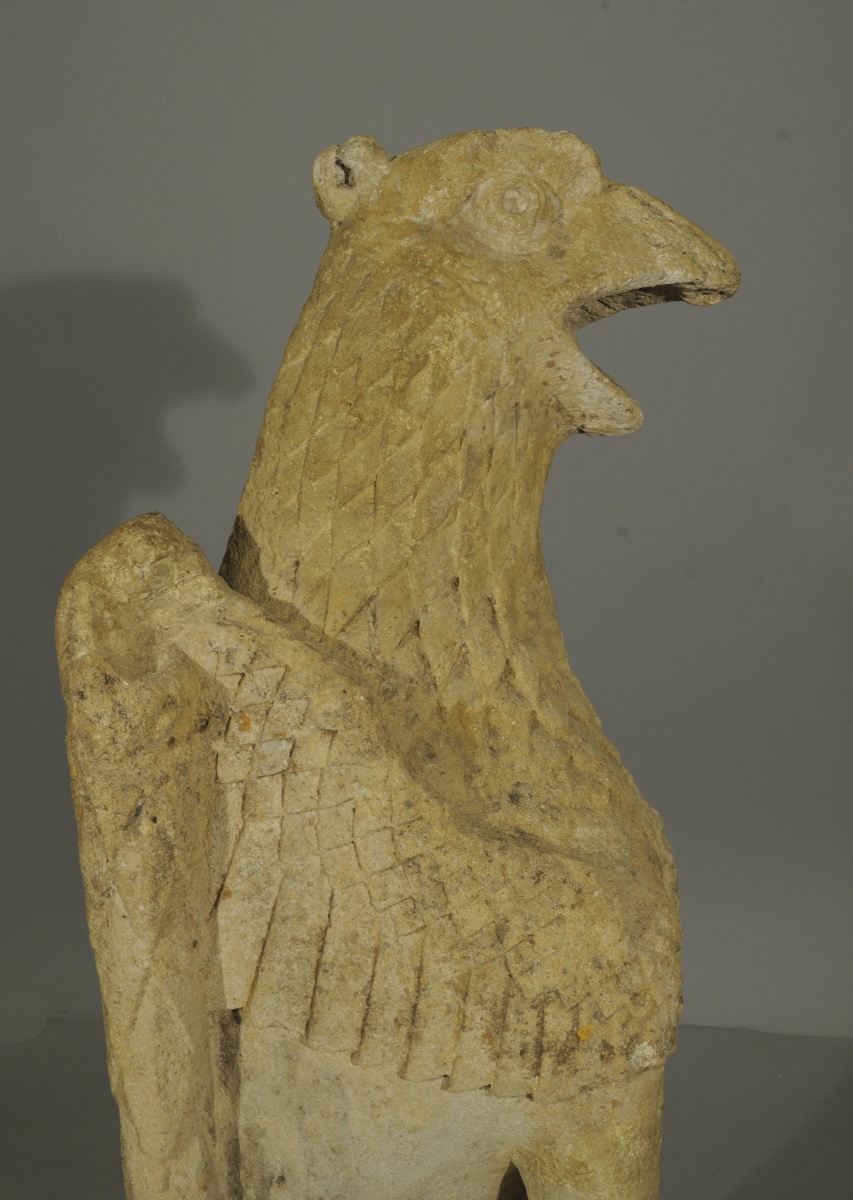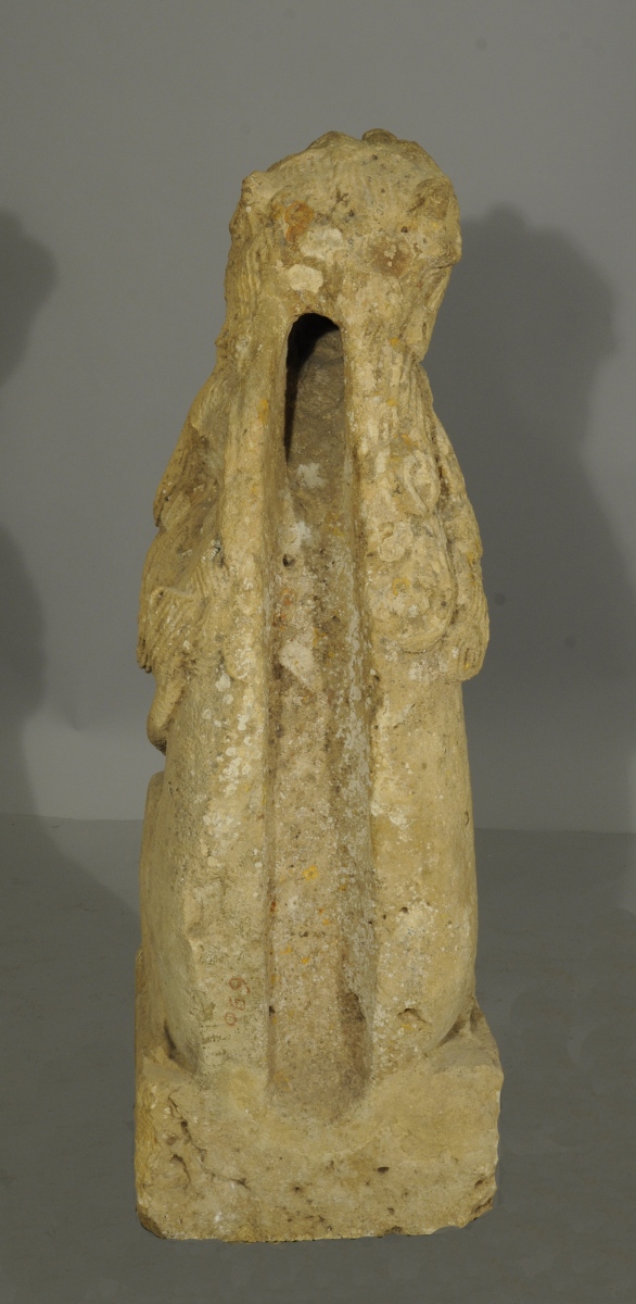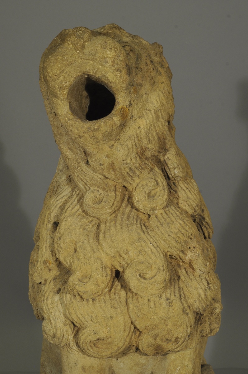 Le musée du Louvre conserve un lion comparable, du second quart du XIVème siècle provenant de la Cathédrale Saint-Pierre et Saint-Paul à Troyes (RF910). Notre paire de gargouilles est réputée avoir fait partie des collections du château de Loubresac dans le Lot. Fortifié par des remparts au XIVème siècle sur un promontoir rocheux surplombant la Dordogne par le Baron Adhémar d'Aigrefeuille, le manoir actuel remonte au XVème siècle. L'église Saint Jean-Baptiste de Loubressac abrite, dans une chapelle du 13ème siècle, un Christ en majesté, et des lions en marbre rose, d'origine carolingienne. Dans la symbolique chrétienne, la complexité fondamentale de l'homme, corps et âme, est symbolisée par l'association de l'oiseau et du lion. Grâce à leurs ailes, les oiseaux s'élèvent au-dessus des vicissitudes strictement terrestres évoquant la quête de spiritualité, alors que l'animalité humaine est évoquée par l'image du lion.