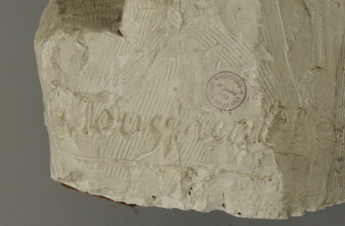 Plâtre portant le cachet de vente "VENDOME / ATELIER TOUSSAINT / 17 janvier 1998".