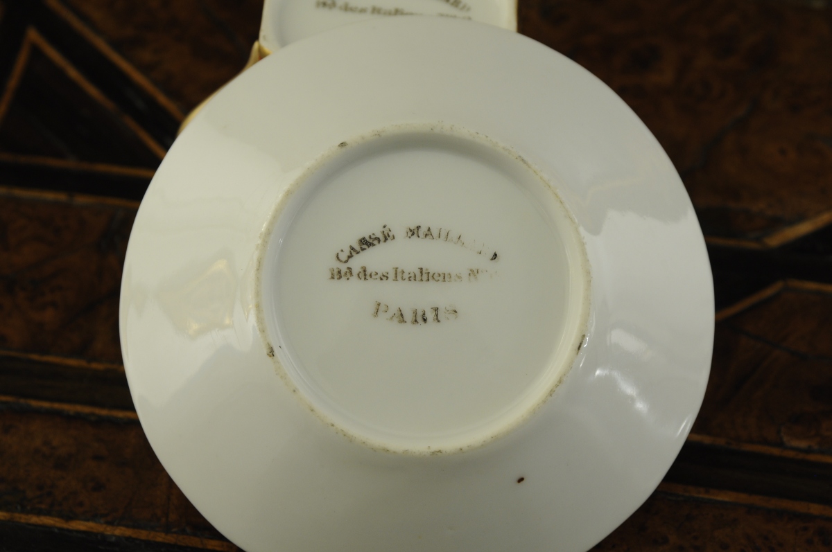 - Régine Plinval de Guillebon: Faïence et Porcelaine de Paris XVIIIe XIXe S., p. 338: Cassé Maillard 1806-1856.
