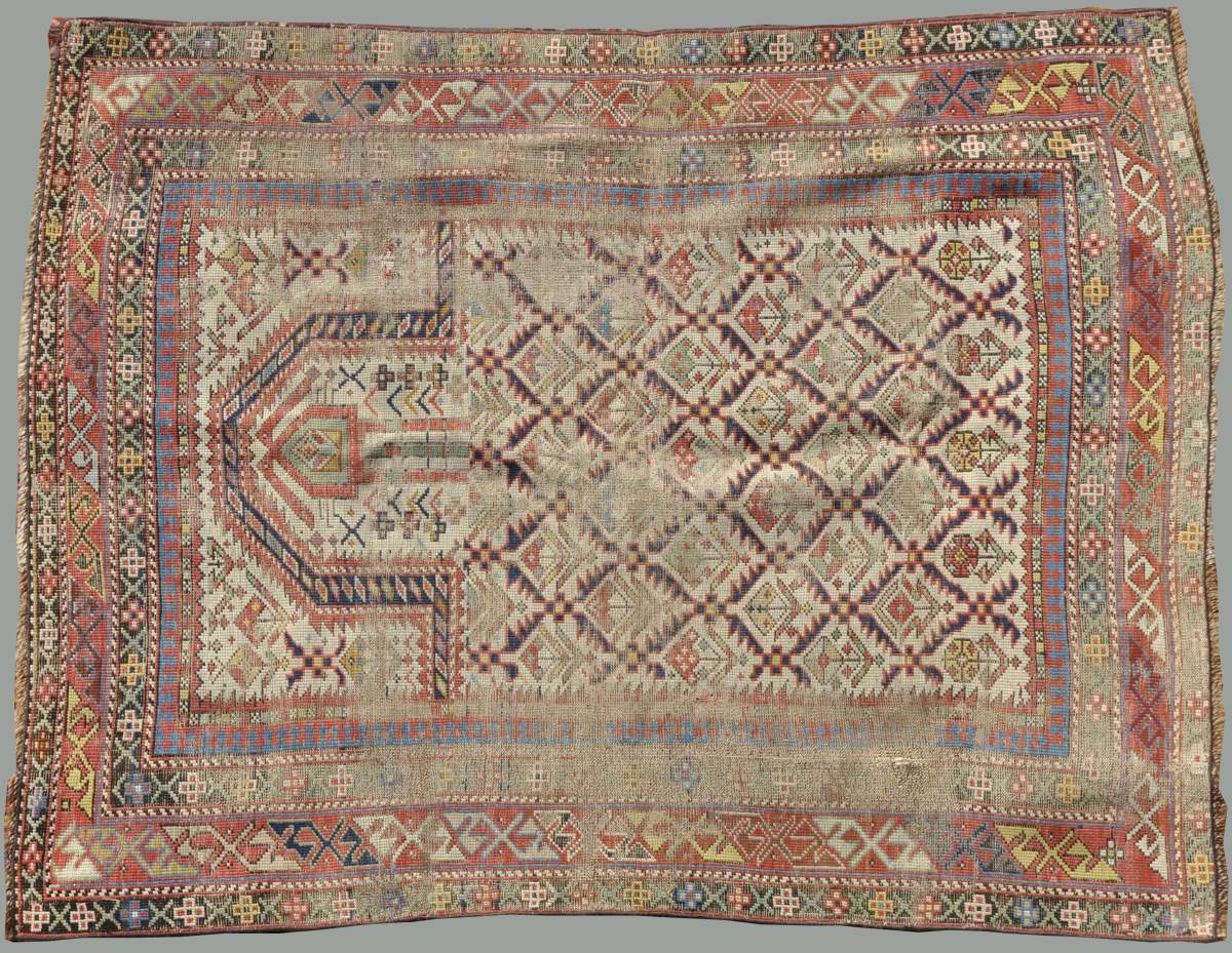 TAPIS mécanique du Daguestan en laine à décor de style caucasien. 137 x 108 cm. (usures)