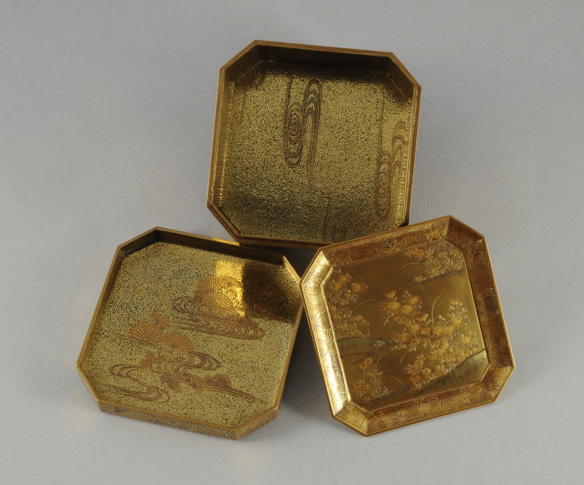BOÎTE KOBAKO octogonale laquée or ornée de fleurs et feuillages. Japon, XIXème. Haut. 5,5, Larg. 10,5, Prof. 10,5 cm. (petits accidents)