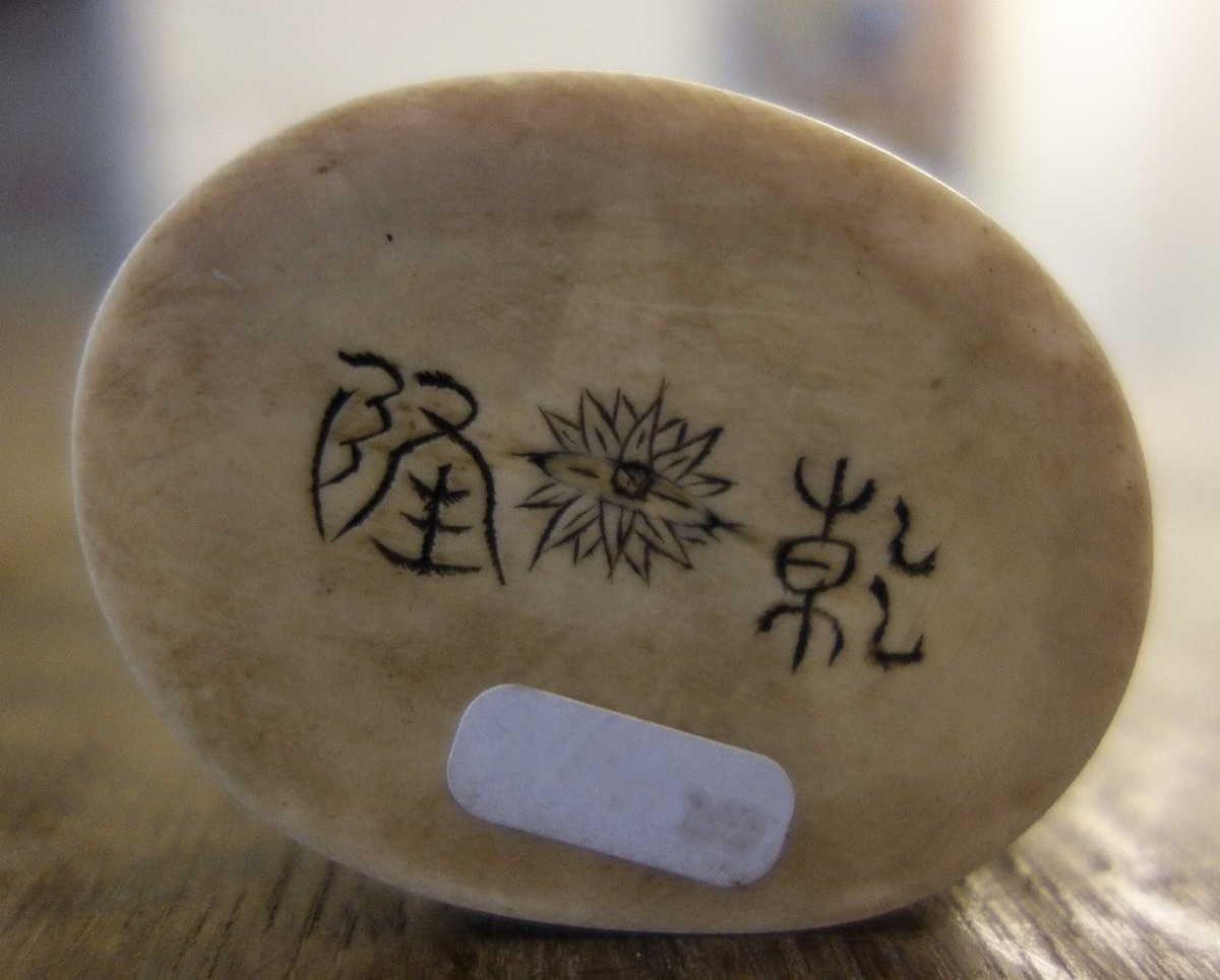 PAIRE DE STATUETTES en ivoire figurant deux vieillards à l'écran et à l'instrument de musique. Signés. Chine, XXème. Haut. 25 cm. (écran accidenté)