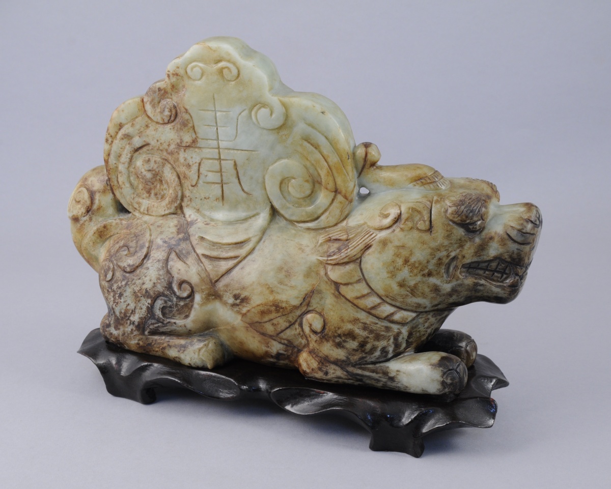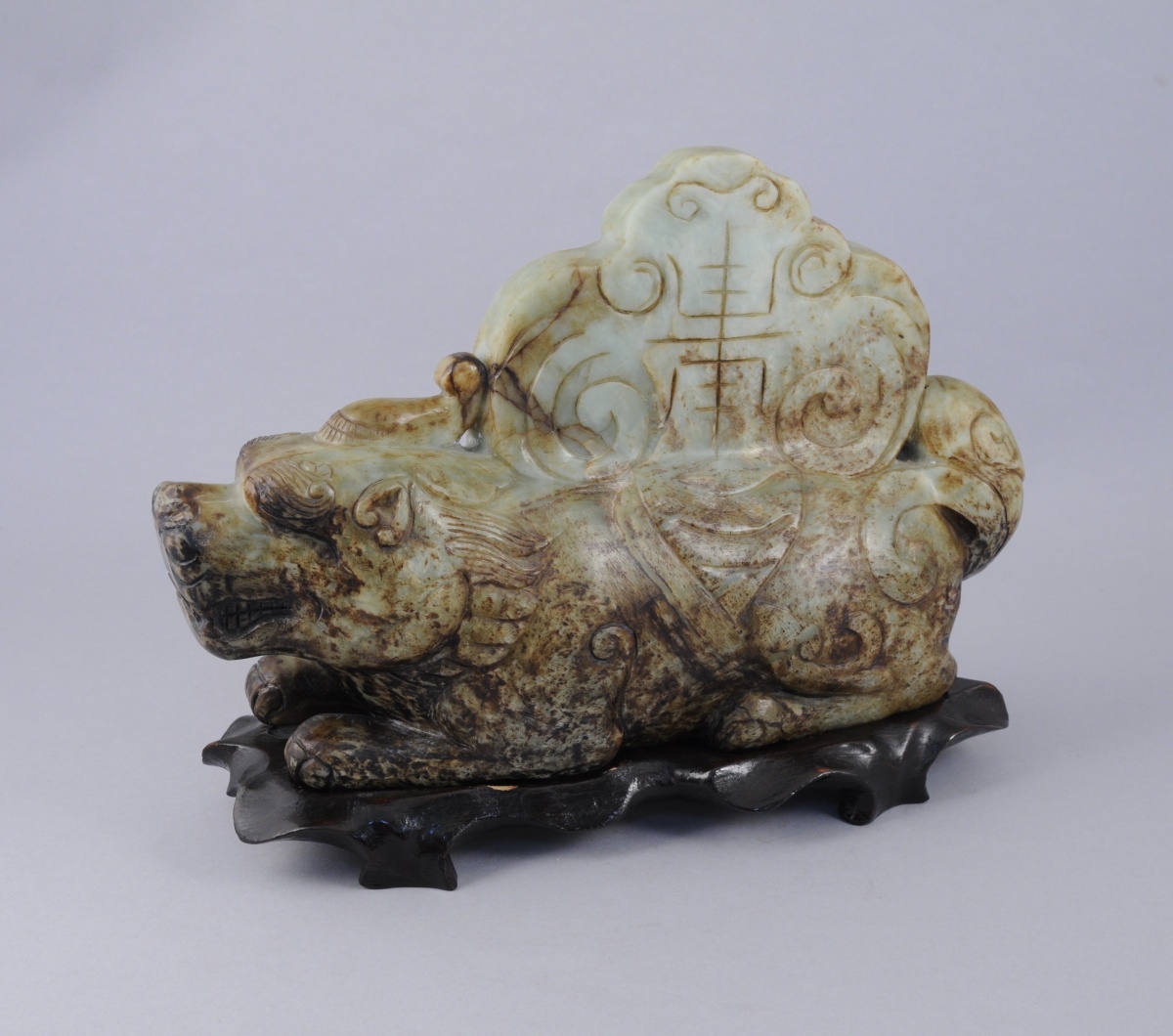CHIEN DE FÔ en pierre dure sculptée (jade?) . Travail asiatique du XXème.