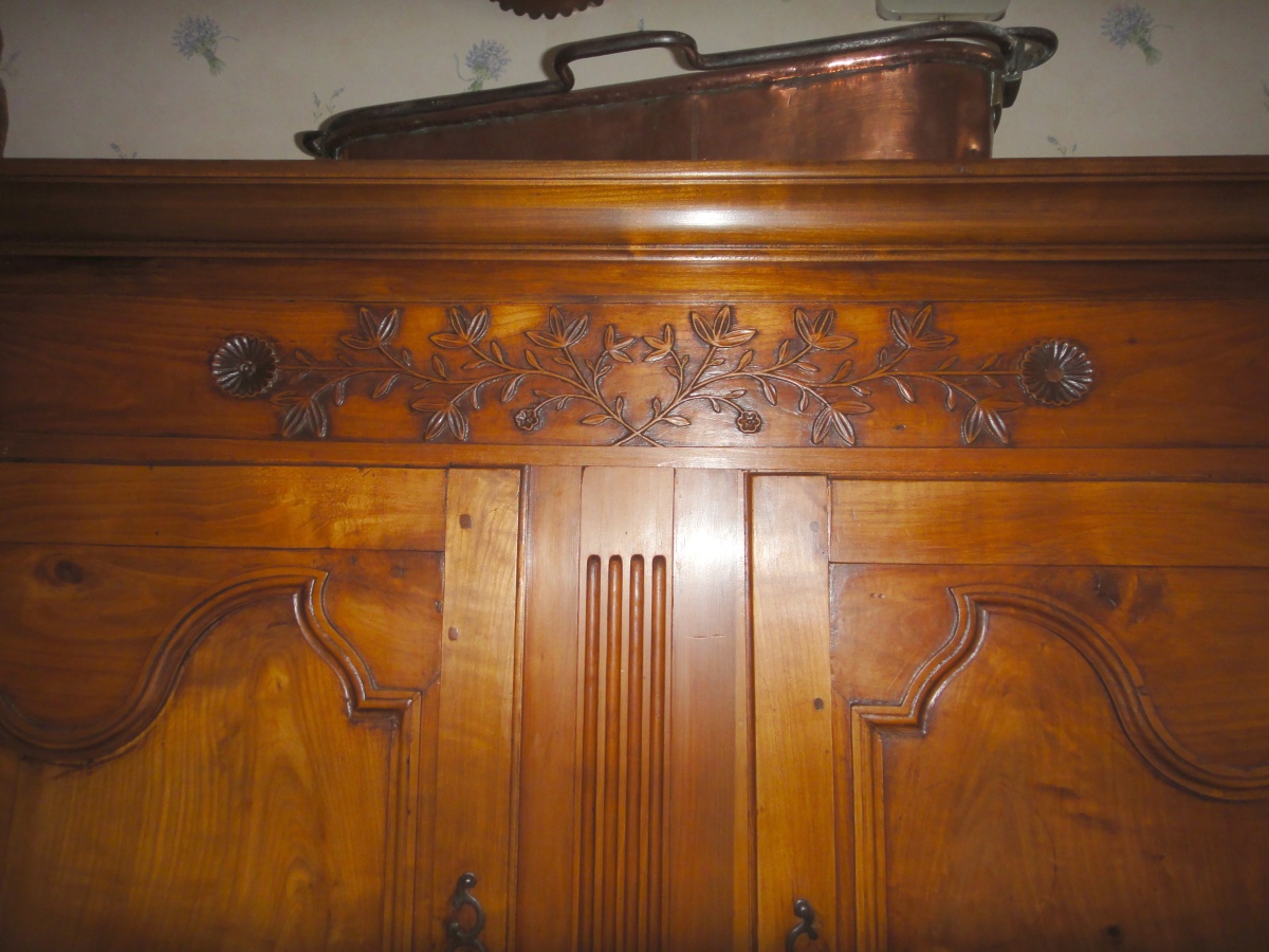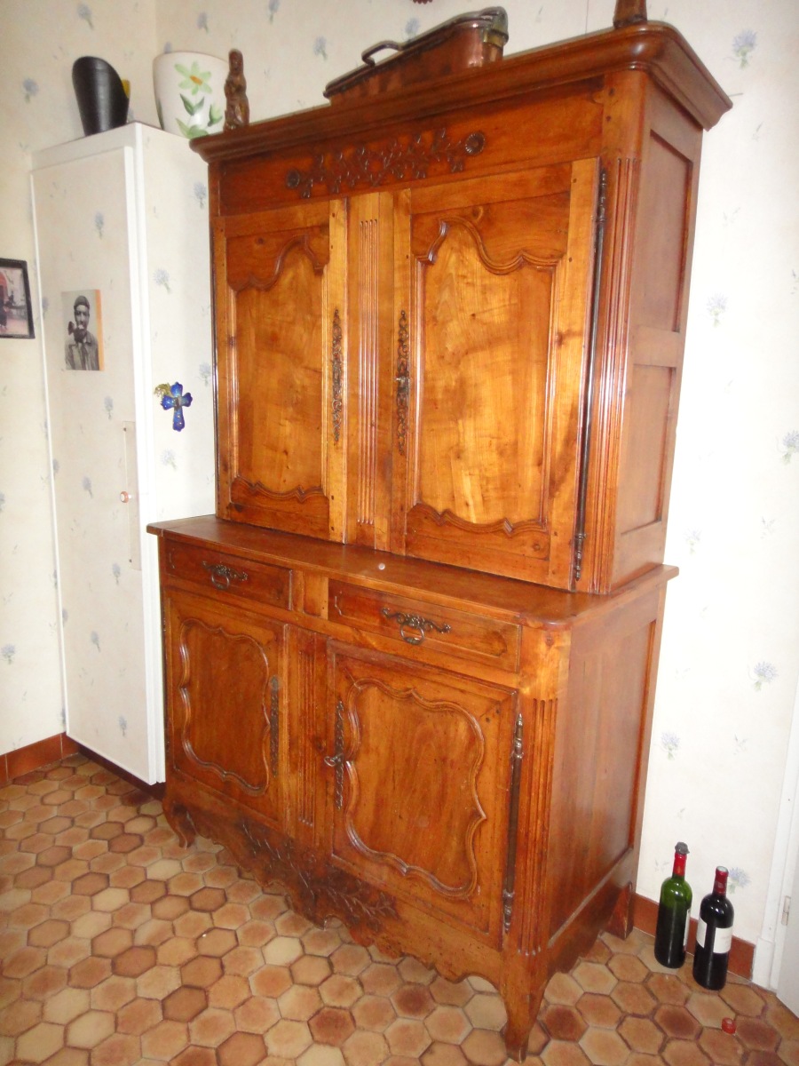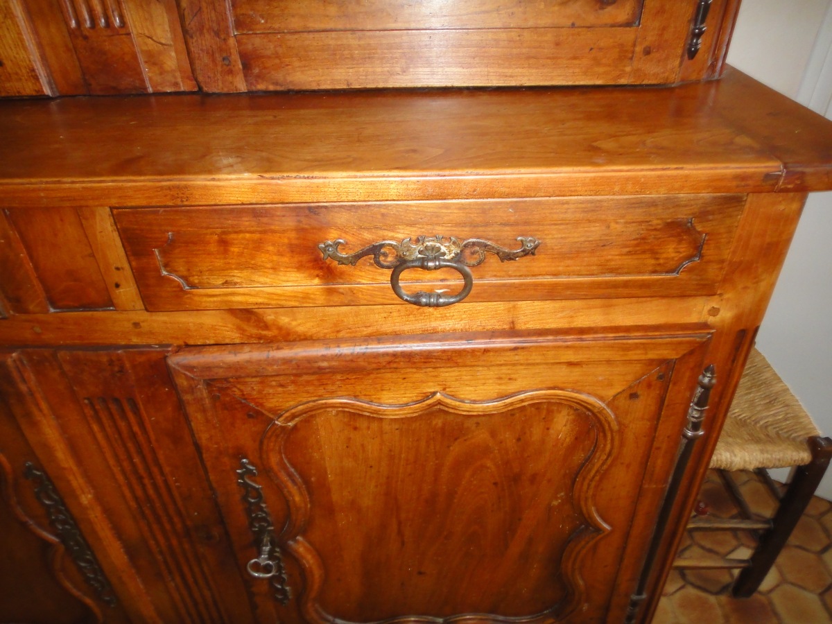 BUFFET DEUX-CORPS rustique ancien, de petite taille. Travail régional de style Louis XV. XIXème.