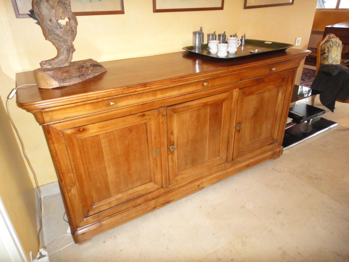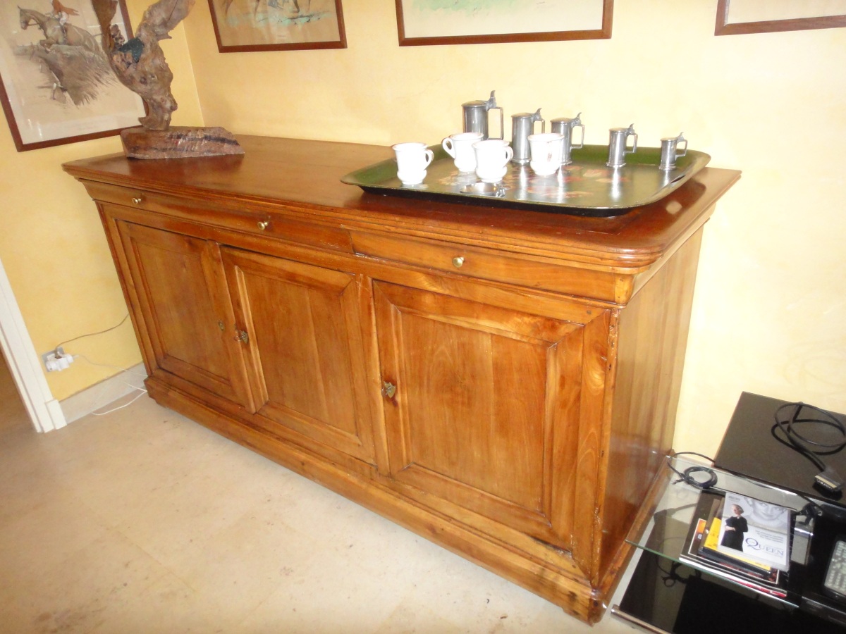 BUFFET ENFILADE en bois fruitier mouluré. Il ouvre par 3 vanteaux et 2 tiroirs en ceinture. Style Louis-Philippe.