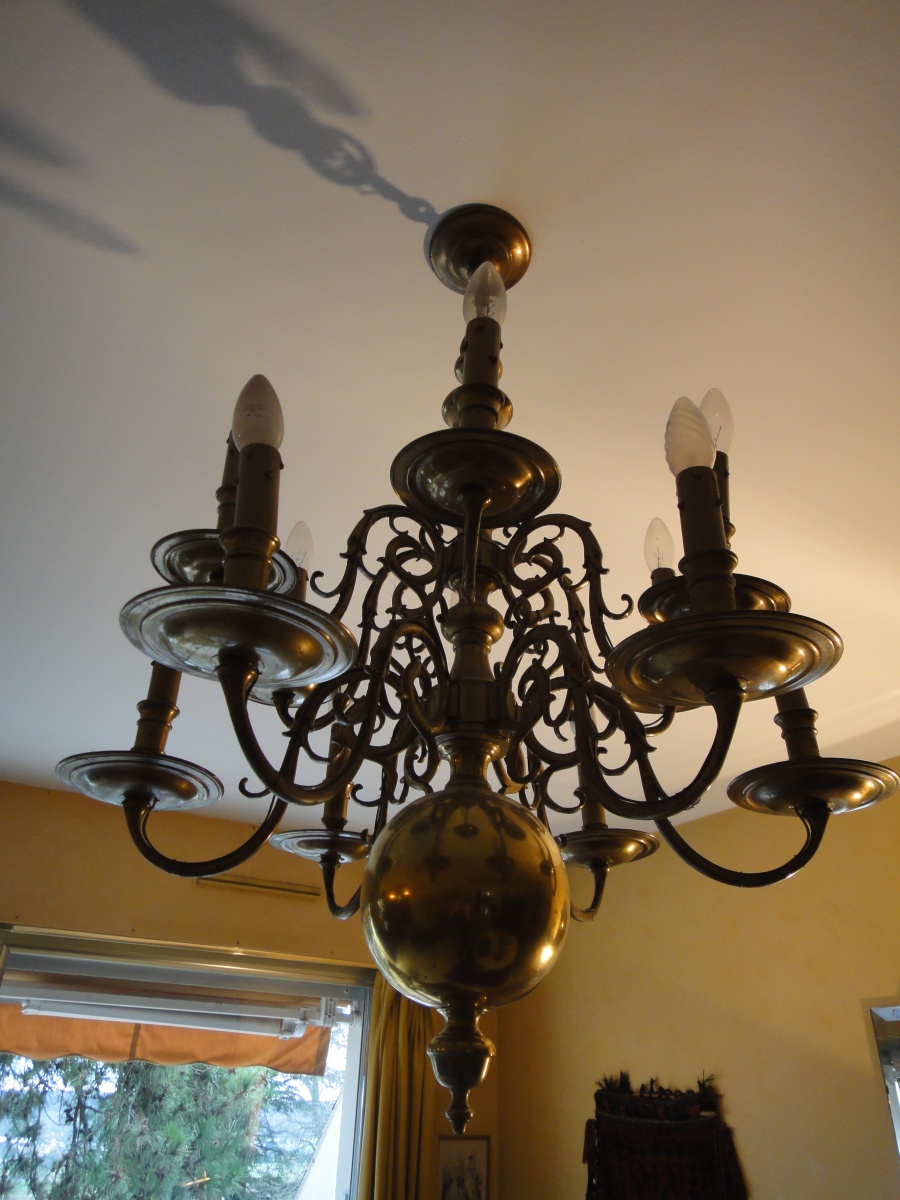 LUSTRE en bronze dit Hollandais à 12 bras de lumière.