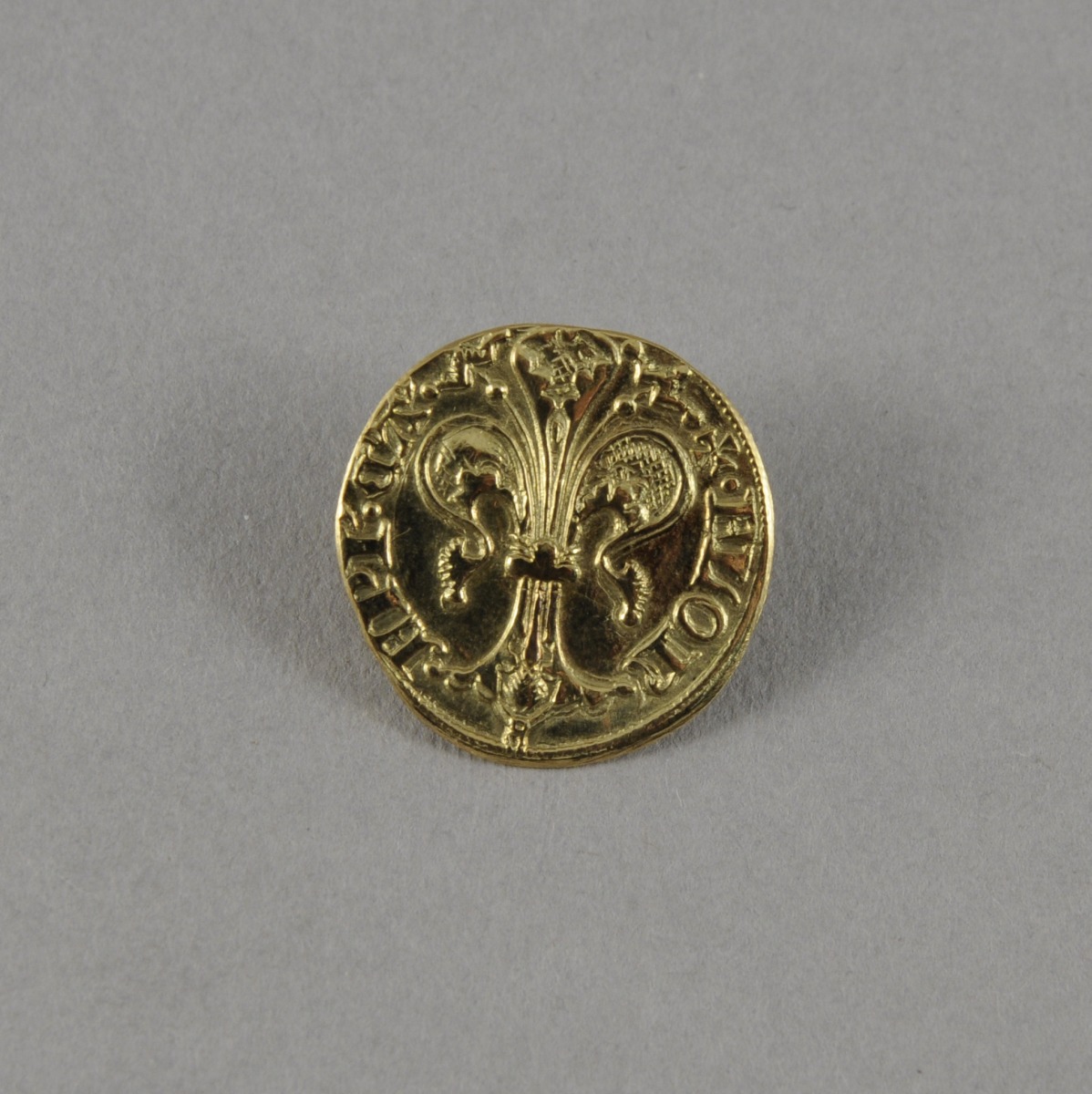 Mention manuscrite, sur un papier: "Florin d'or de la ville de Florence / Remise au Palazzo Vecchio par le Maire de Florence à l'occasion du 10ème anniversaire des Commanderies Italiennes / Mars 1968 (2-5)".