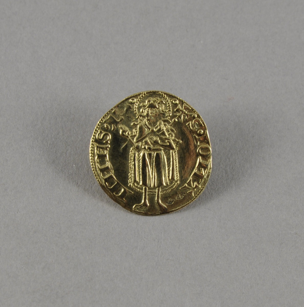 FLORIN EN OR orné, à l'avers, d'une fleur de lys entourée de la mention "+.FLOR .EPI'.CA'". Le revers figure St Jean Baptiste entouré de la mention "+.S.IOHA NNES.B". Deux poinçons italiens hexagonaux, l'un marqué "750" et l'autre "11 FL". XXème.