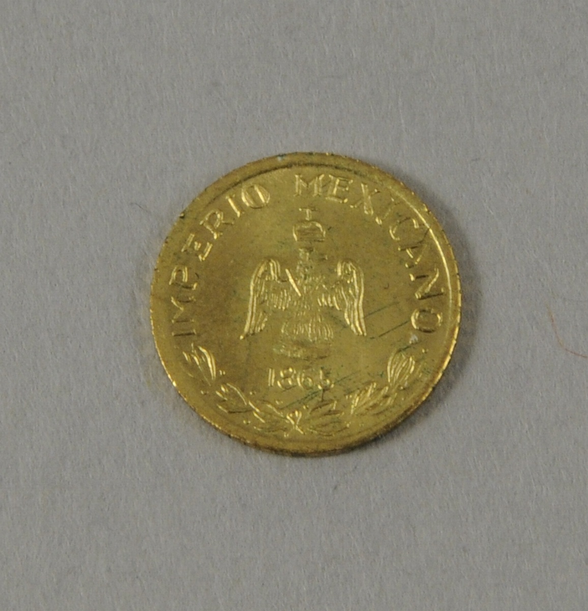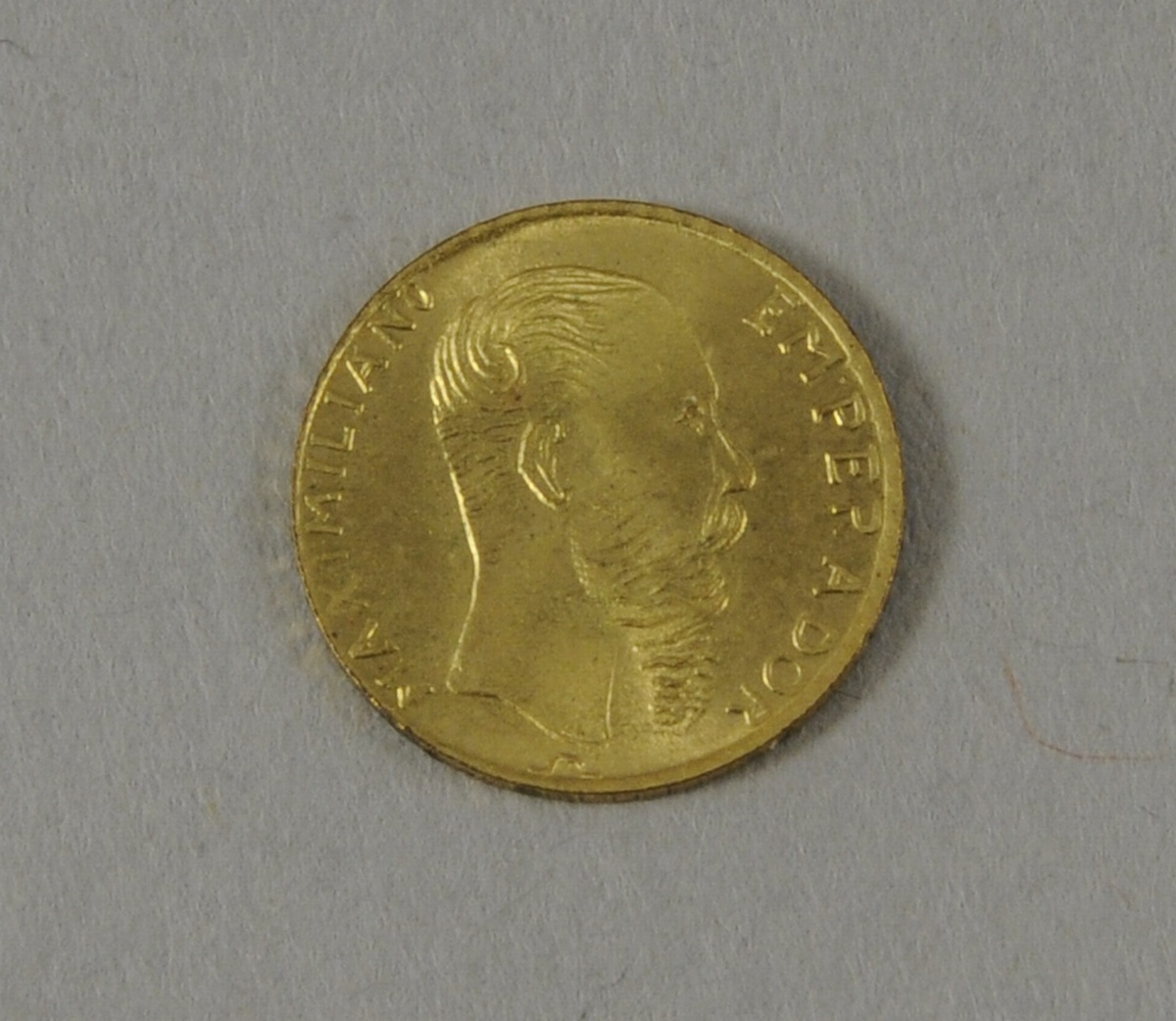 Mexique token (jeton) fantaisie en or pâle datée 1865 mais frappé 1965 à Mexico. 0.4g.