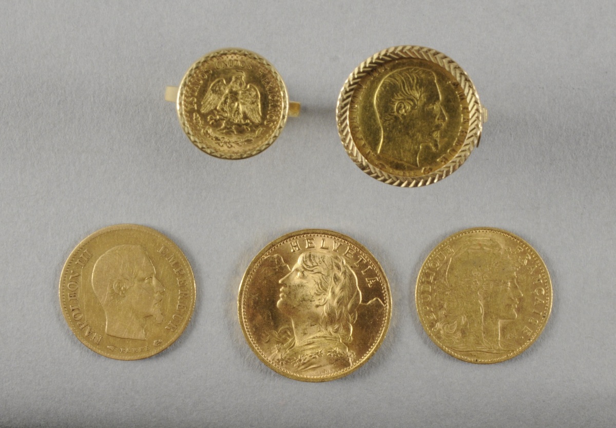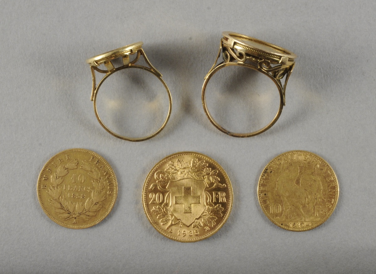 -FRANCE, Napoléon III, une pièce de 5F, tête nue,1860. Montée en bague en or.