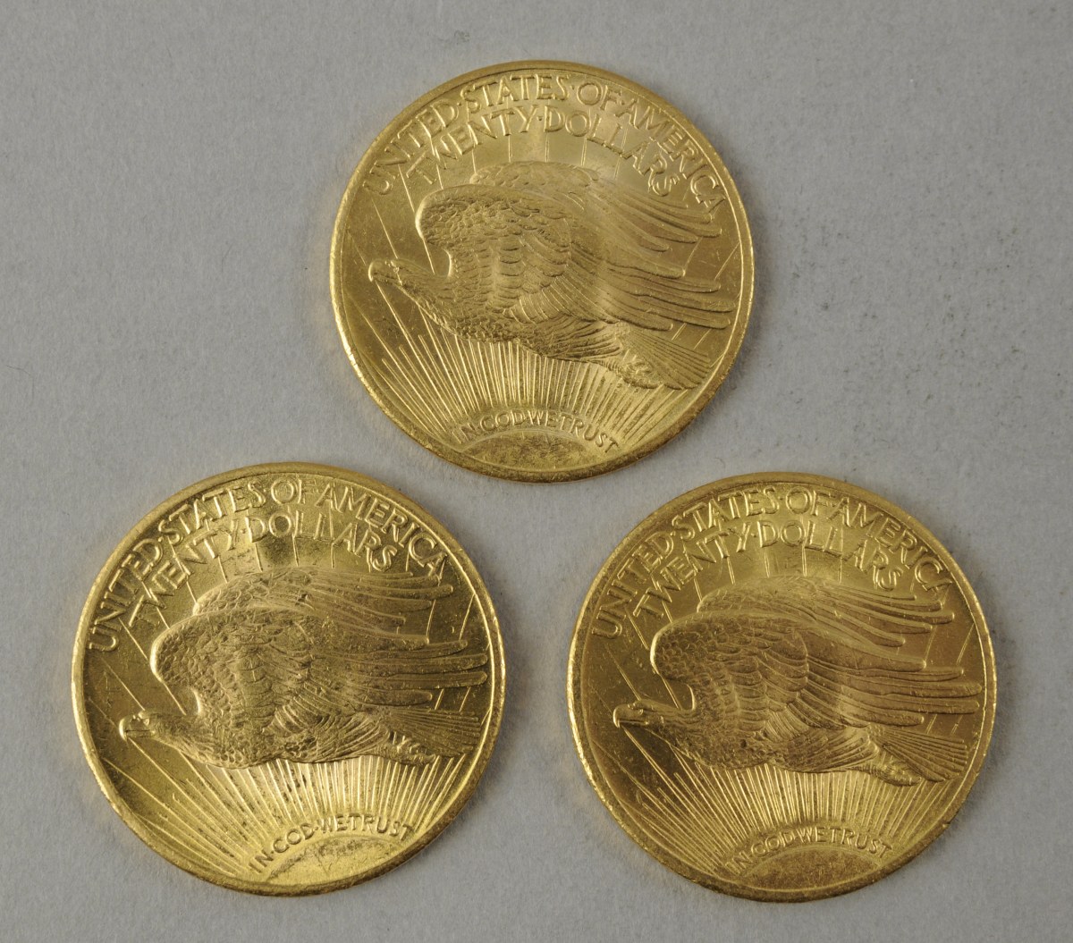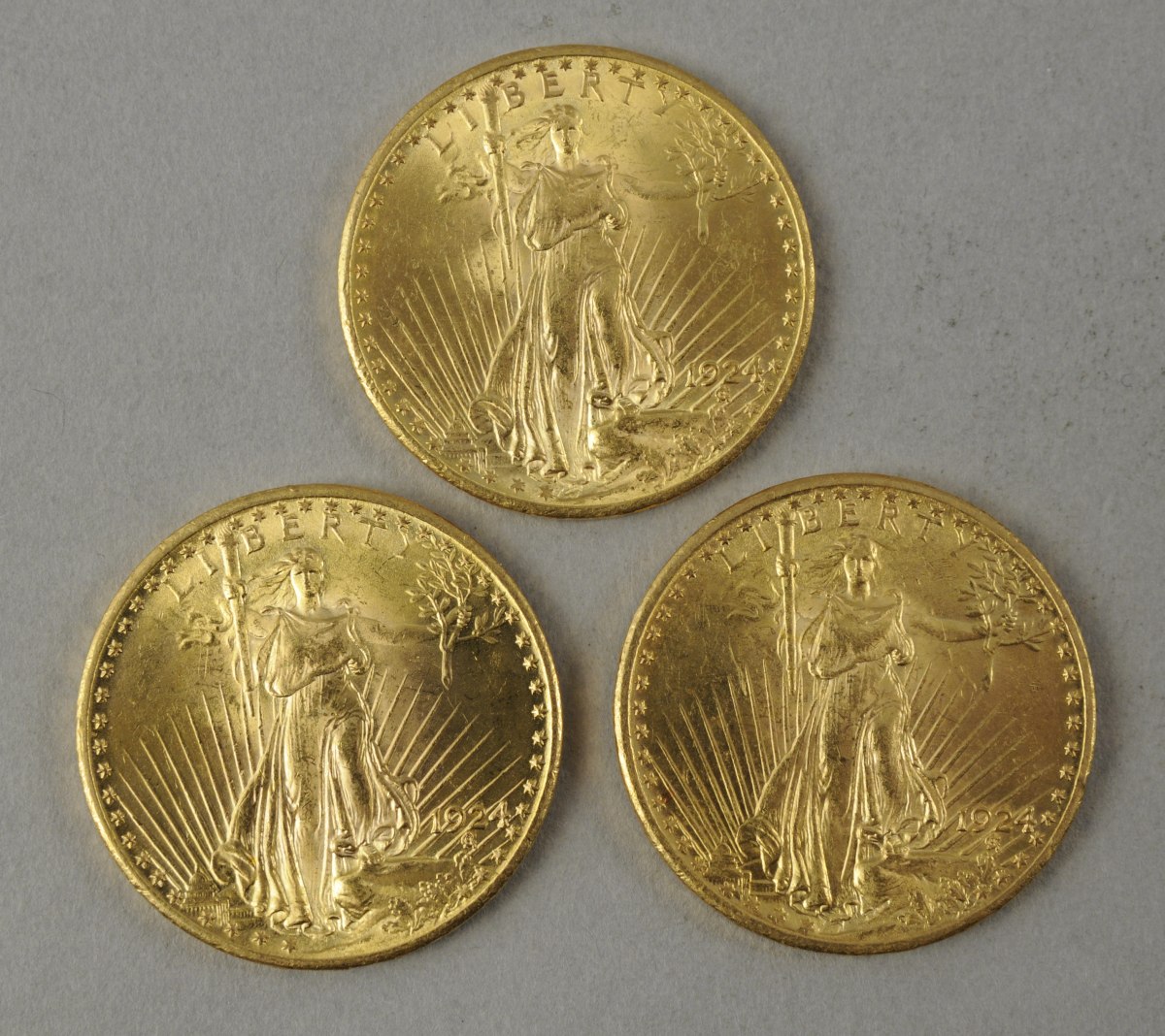 LOT, USA: trois pièces de 20 dollars or, 1924. SUP