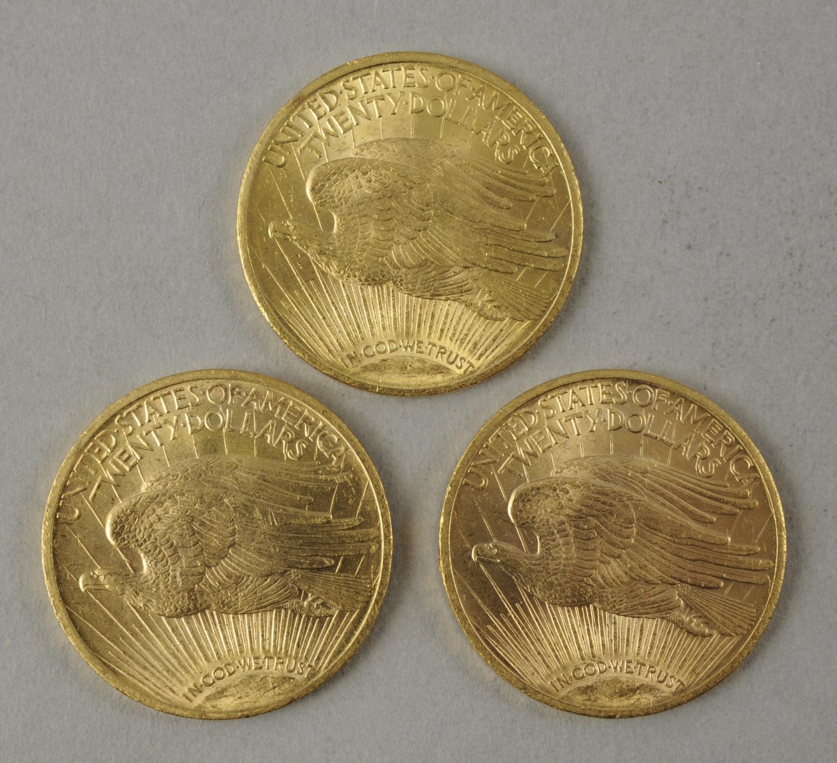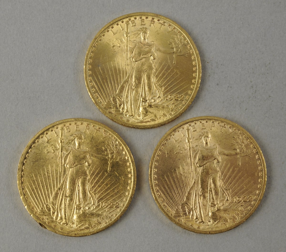 LOT, USA: trois pièces de 20 dollars or, 1922. SUP