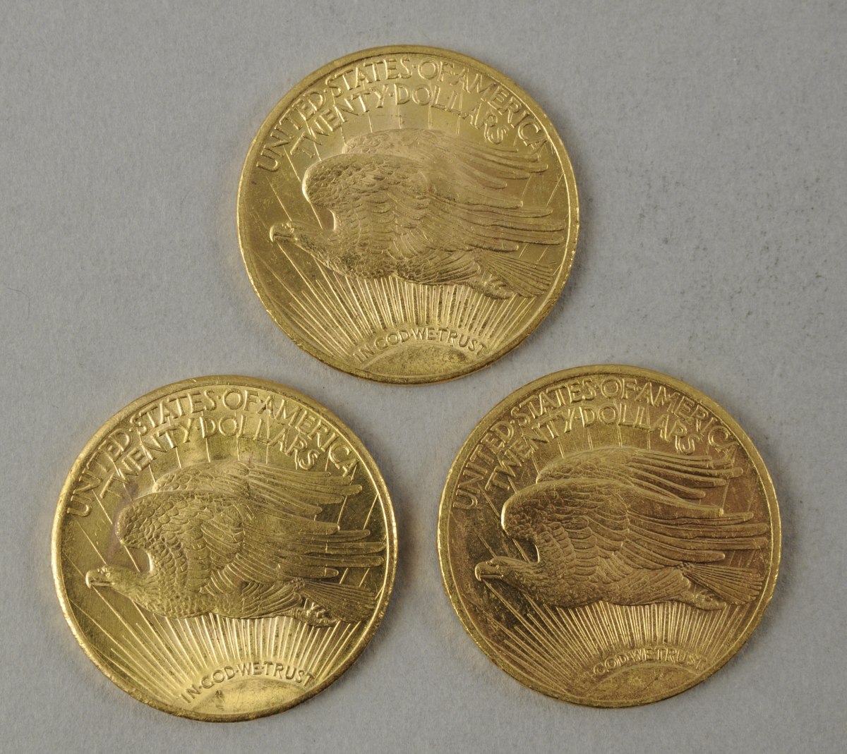 LOT, USA: trois pièces de 20 dollars or, deux de 1922 et 1924. SUP