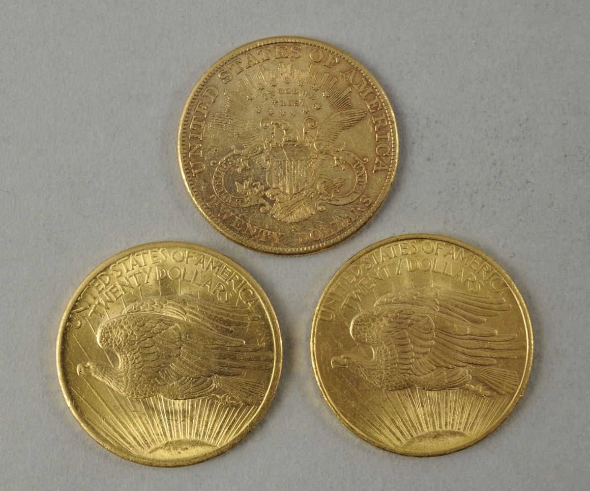 LOT, USA: trois pièces de 20 dollars or, 1906 (San Francisco) et deux de 1908. SUP