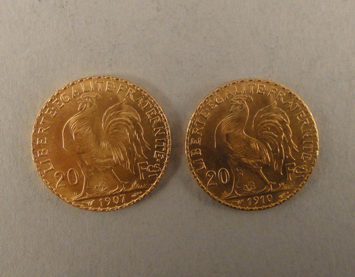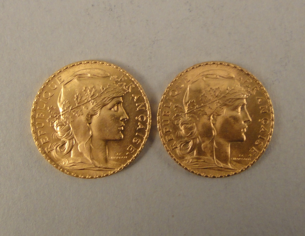 FRANCE, 2 pièces de 20F or, IIIème République au Coq.