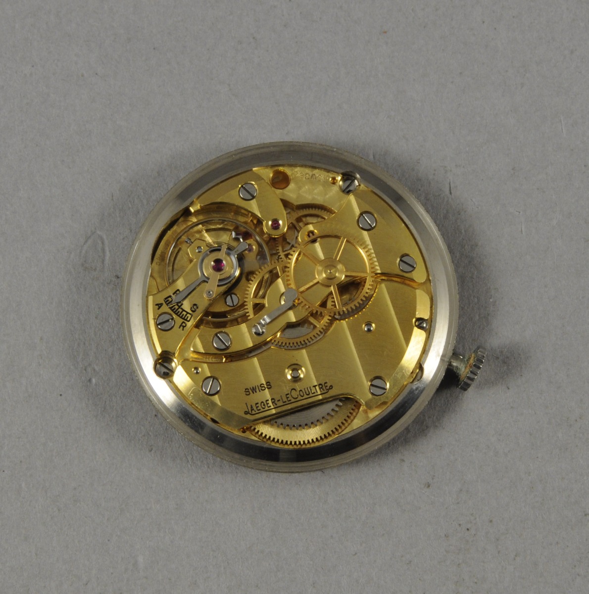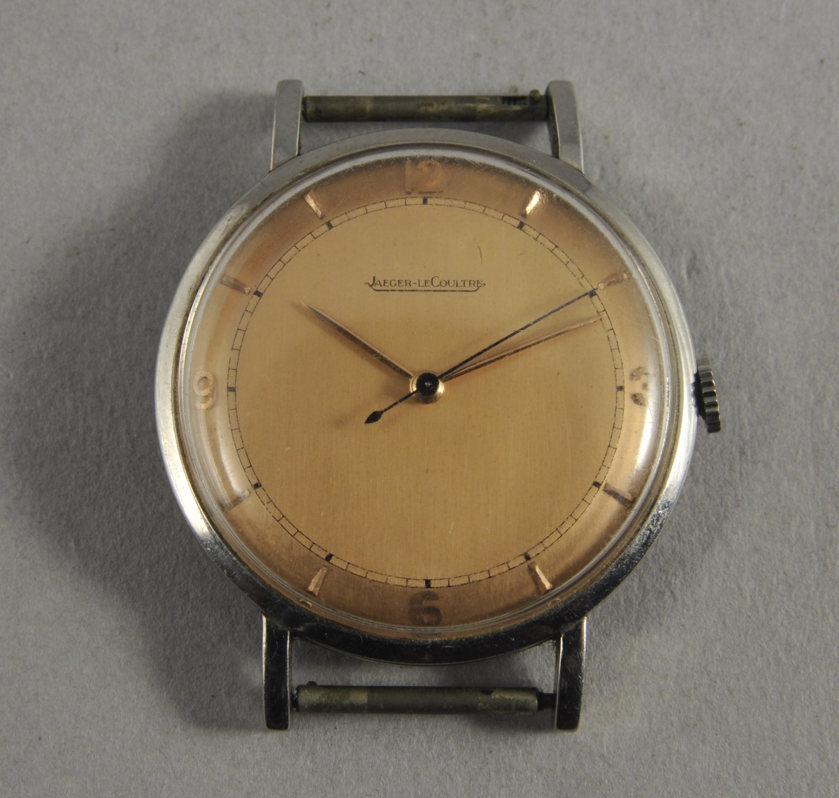 JAEGER-LECOULTRE. MONTRE DE POIGNET d'homme de forme ronde en acier. Cadran de couleur indiquant les heures en chiffres arabes et index bâtonnets. Aiguilles des heures et minutes or et trotteuse centrale en acier bleui. Mouvement mécanique signé et numéroté "430862". Le boîtier: "L. 389375". État de marche.