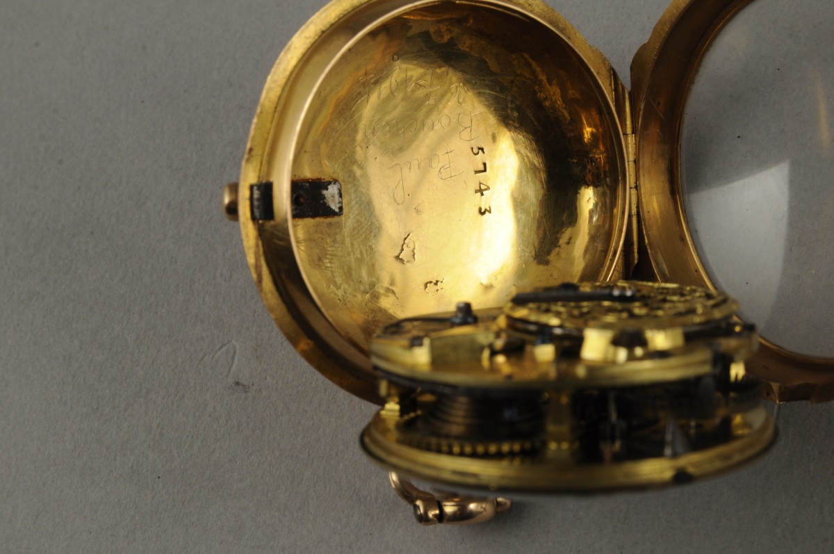 Le boîtier numéroté 5743. Poinçon de maître orfèvre. Poinçon de lettre date au " C " couronné pour l'année 1766.