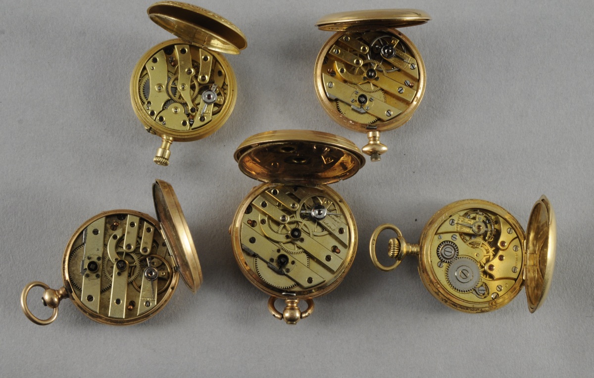 LOT DE 5 MONTRES DE COL en or, à clef...