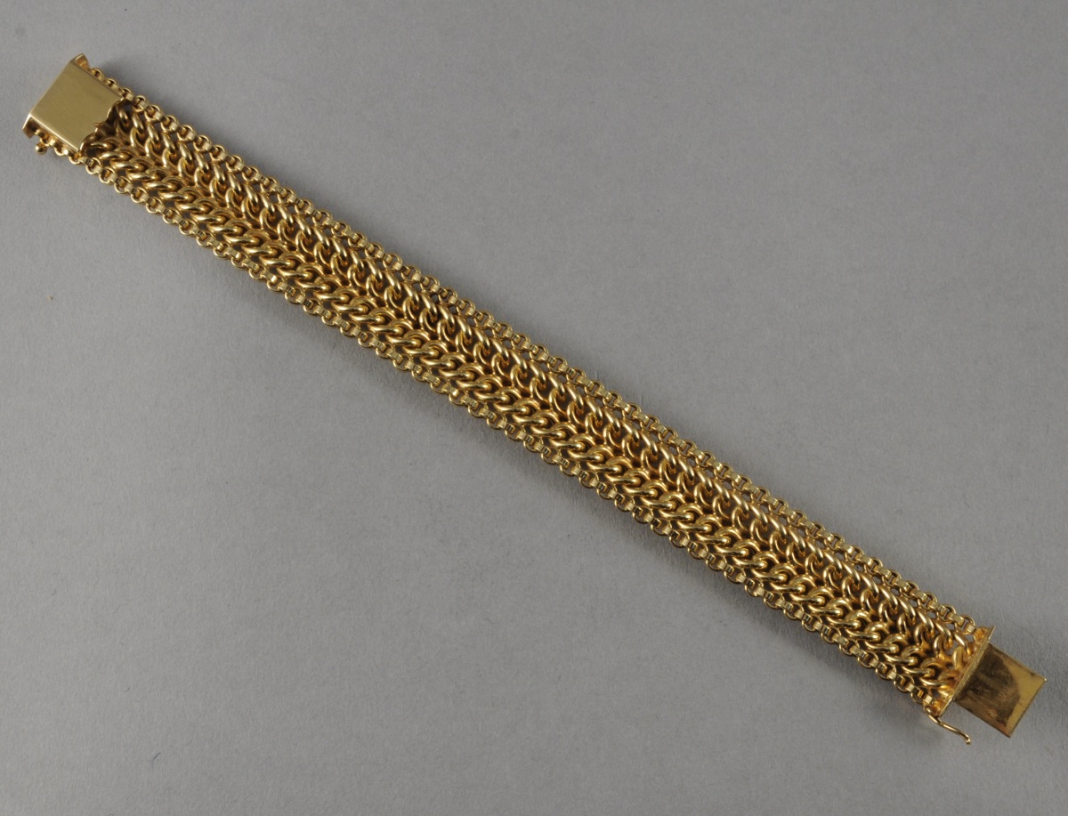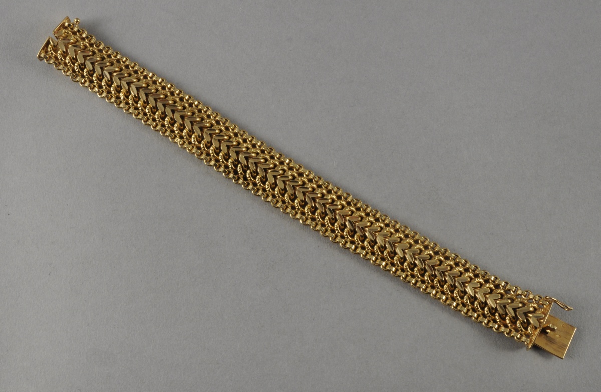 BRACELET articulé en or de deux tons. Dans un écrin. Long. 18,7 g. Poids brut: 29,7 g.