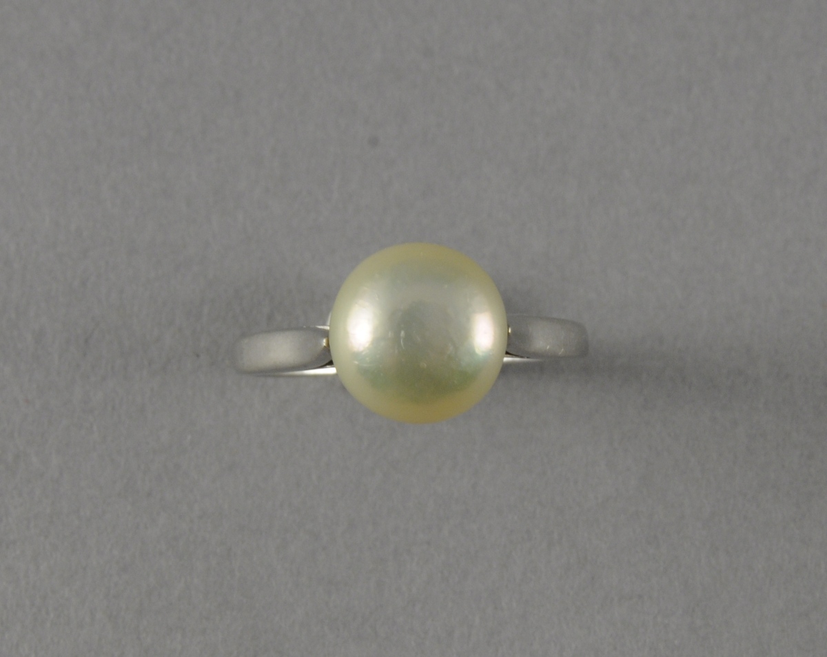 BAGUE en or gris, ornée d'une perle bouton.Tour de doigt: 55.Poids brut: 3 g.