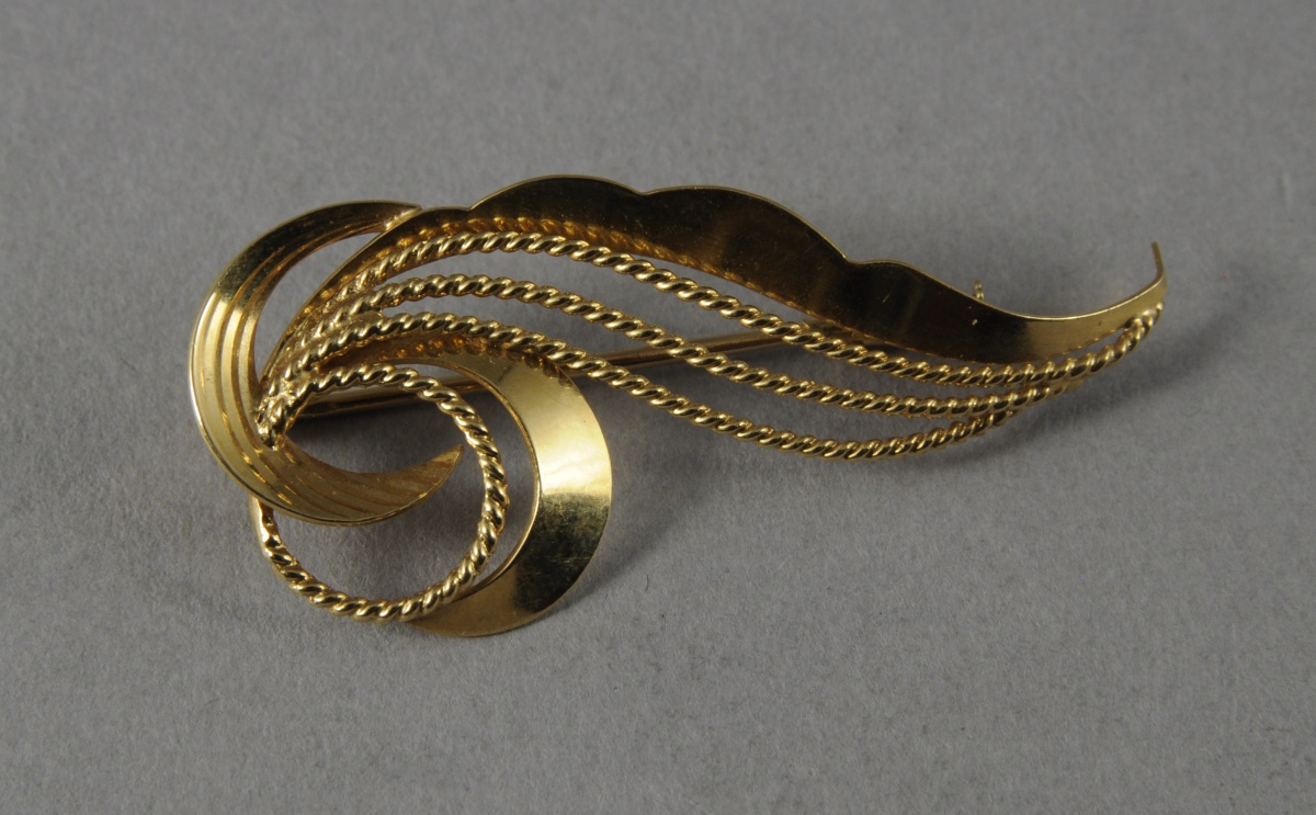 - BROCHE de forme mouvementée. Poids brut: 3,5 g.