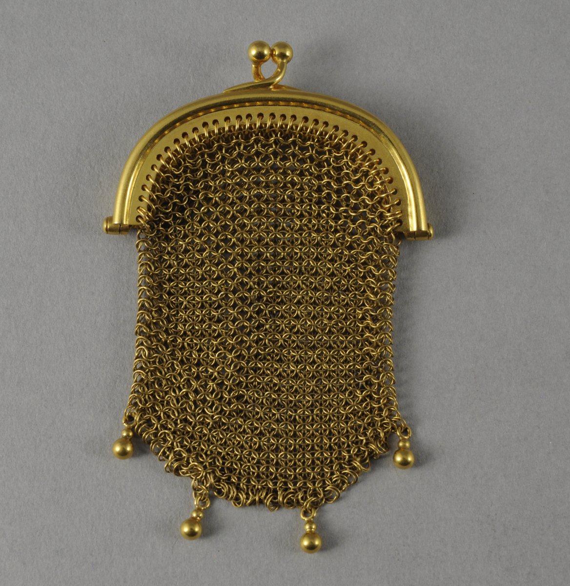 BOURSE en or jaune cotte de maille terminée par quatre petites boules. Poids brut: 21,3 g.