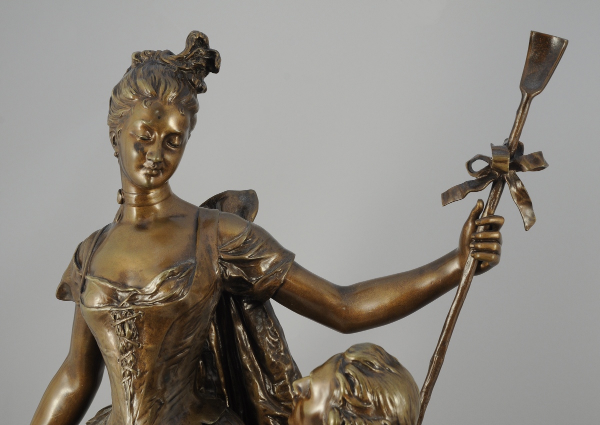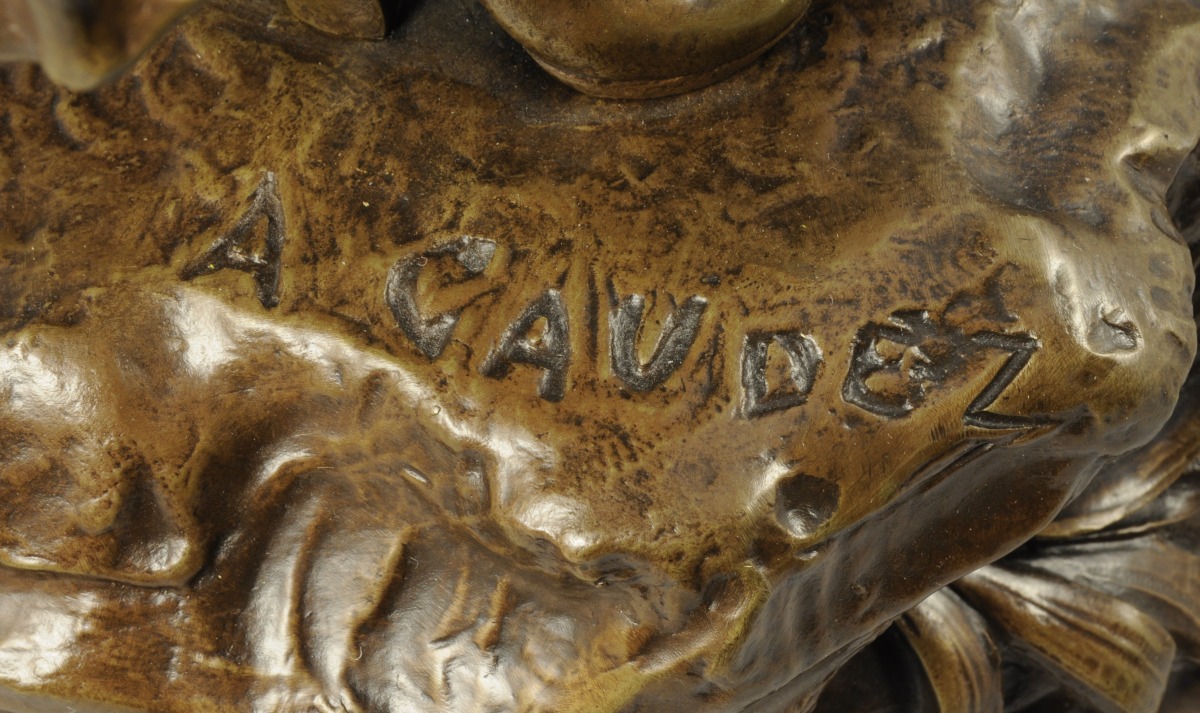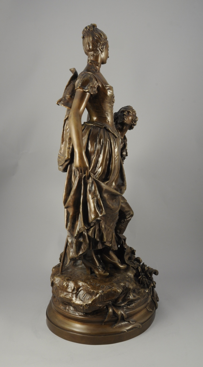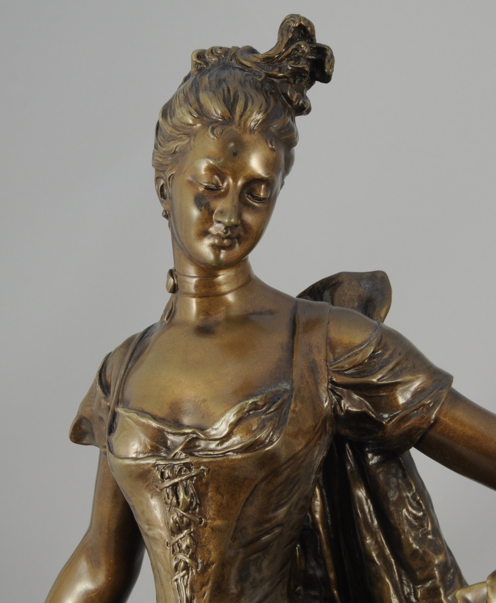 Élève de François Jouffroy à l'École des beaux-arts de Paris en 1862, Adrien Gaudez, peuple la France de Monuments à la mémoire de ses grands hommes. Ce modèle de Watteau fut créé en 1890 en hommage au célèbre peintre portraitiste de talent du XVIIIème siècle. Les dimensions exceptionnelles de ce bronze le font tutoyer la sculpture monumentale chère à l'oeuvre de Gaudez.