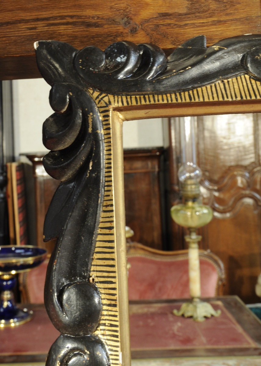 DEUX PAIRES de CADRES en bois doré et laqué noir de style Louis XV.