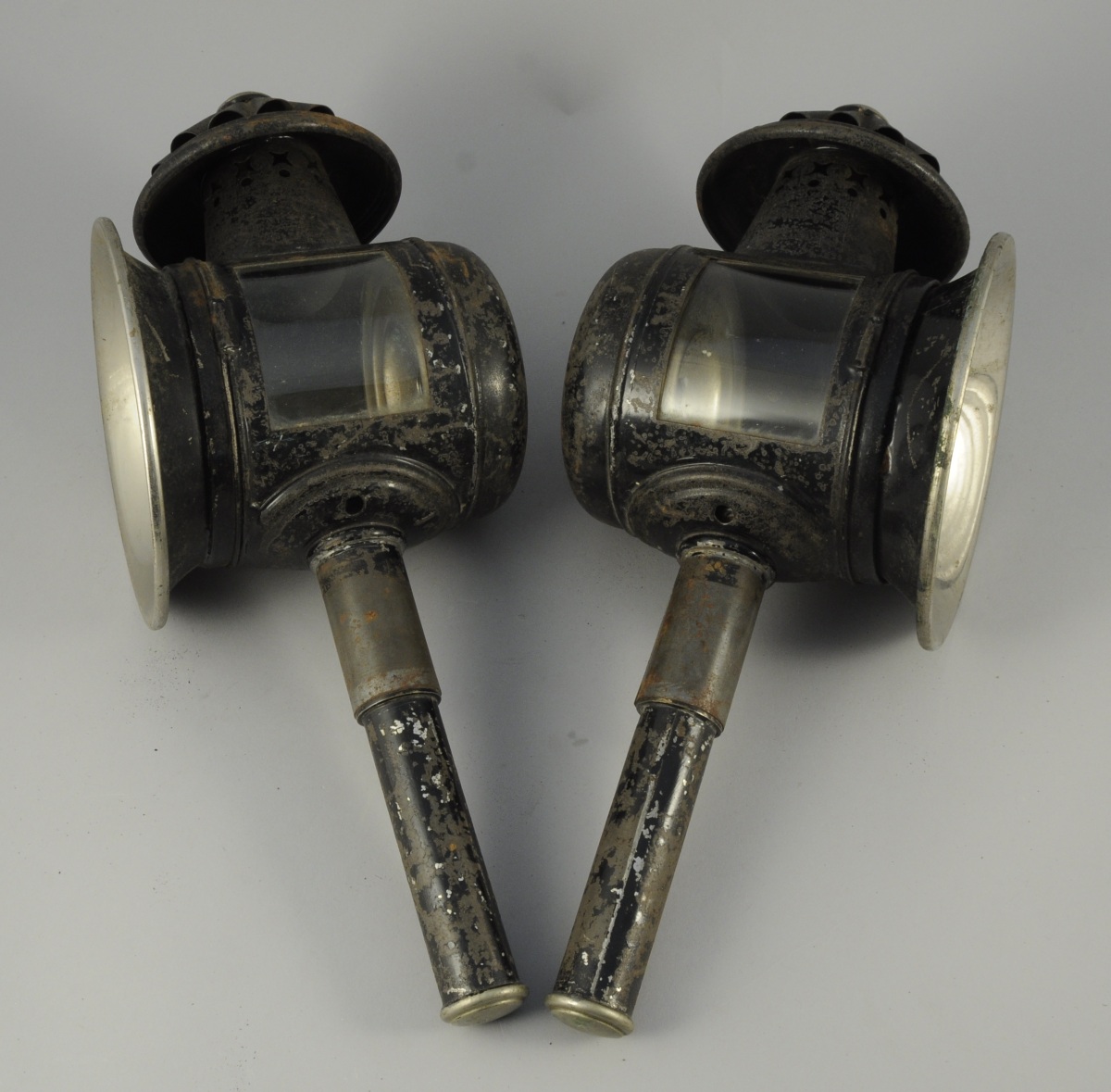 PAIRE DE LAMPES DE FIACRE en tôle laquée noire. Marquée "39bis".