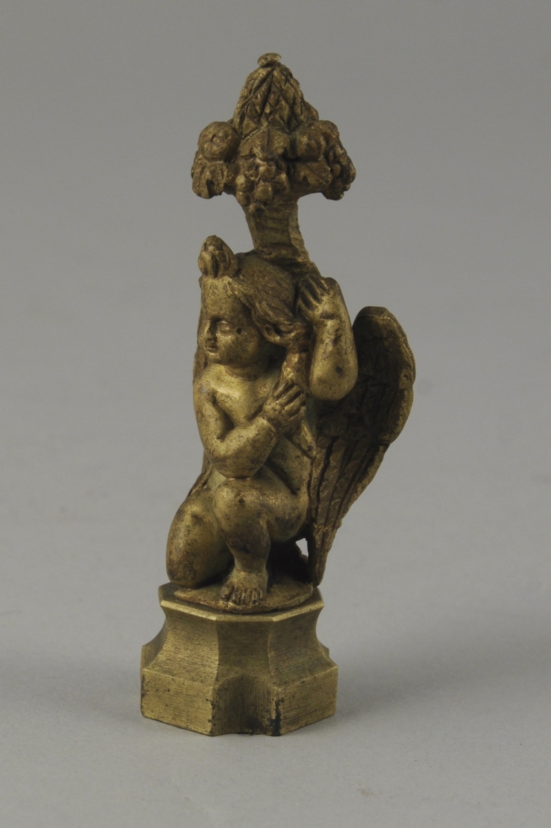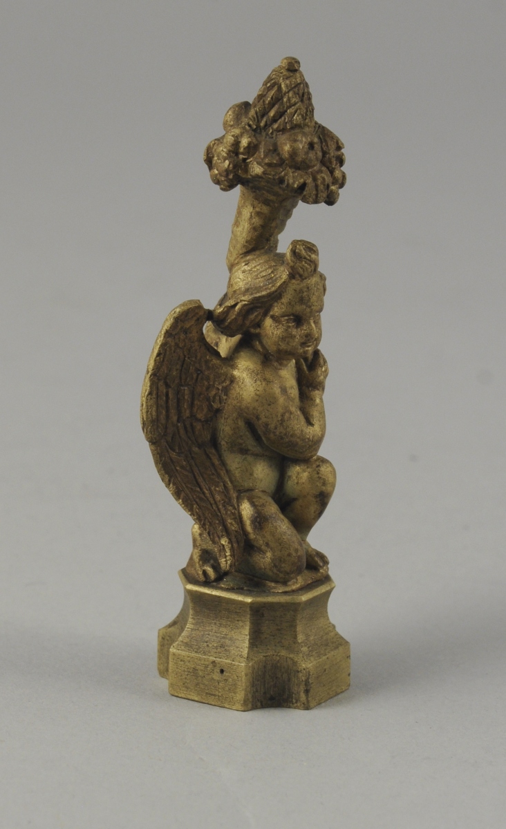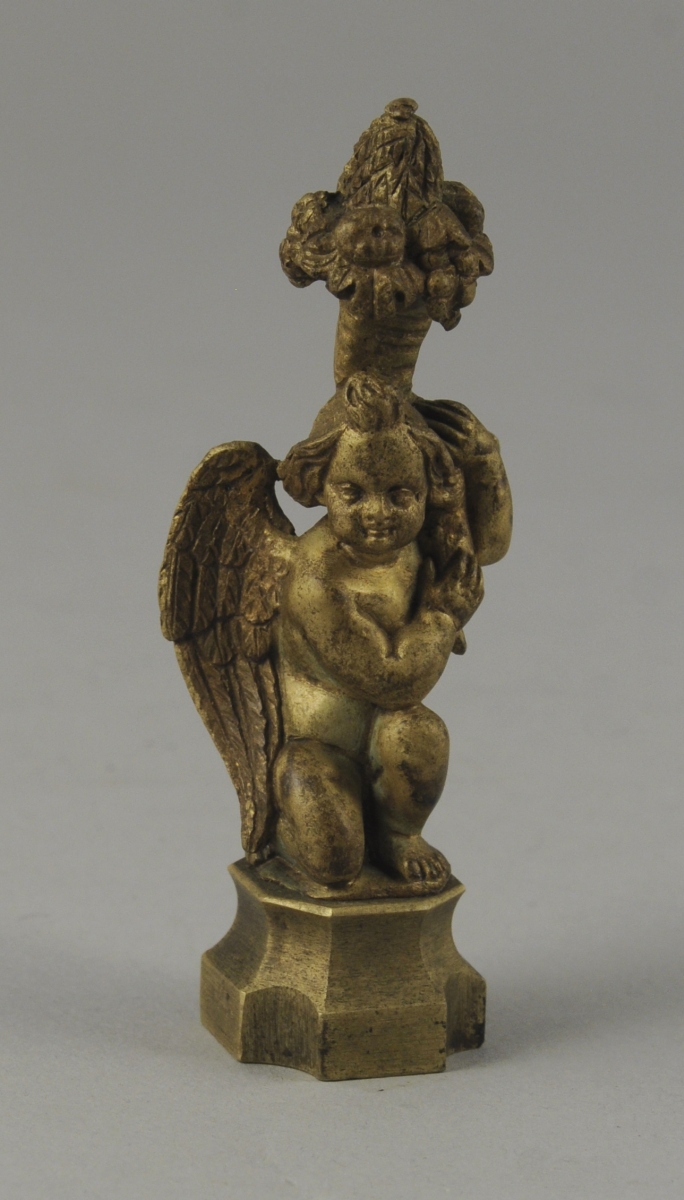 CACHET vierge en bronze doré représentant un ange tenant une corne d'abondance. XIXème. Haut. 7,5 cm.