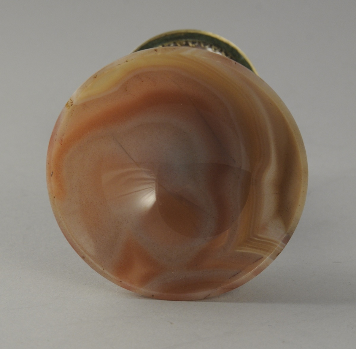 PETITE COUPE MONTÉE en pierre dure (?). Pied balustre, garnitures de bronze patiné et doré.