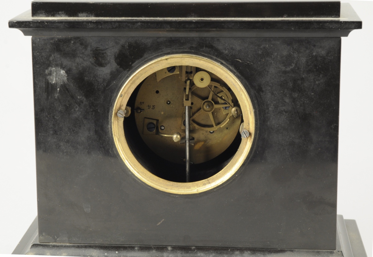 Haut. 18,5, Larg. 20, Prof. 10 cm. (manque, petits éclats, mouvement à réviser)