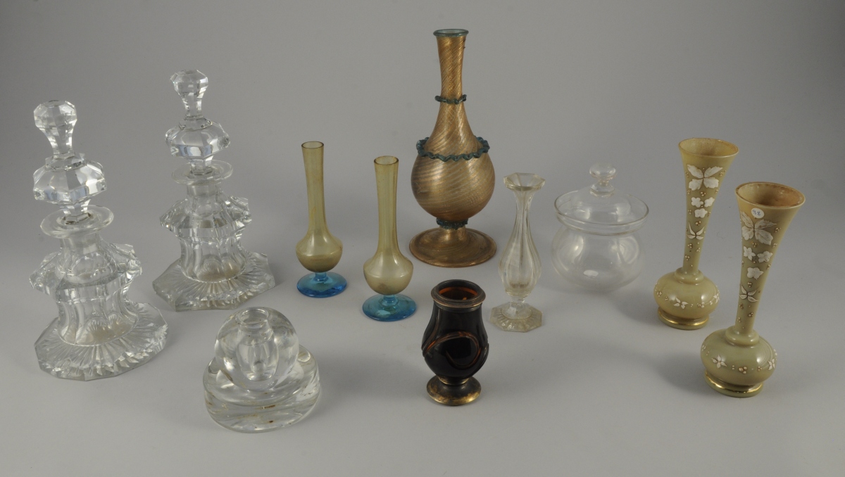 - PAIRE de PETITS VASES SOLIFLORES en verre. Première moitié du XXème. Haut. 15 cm.