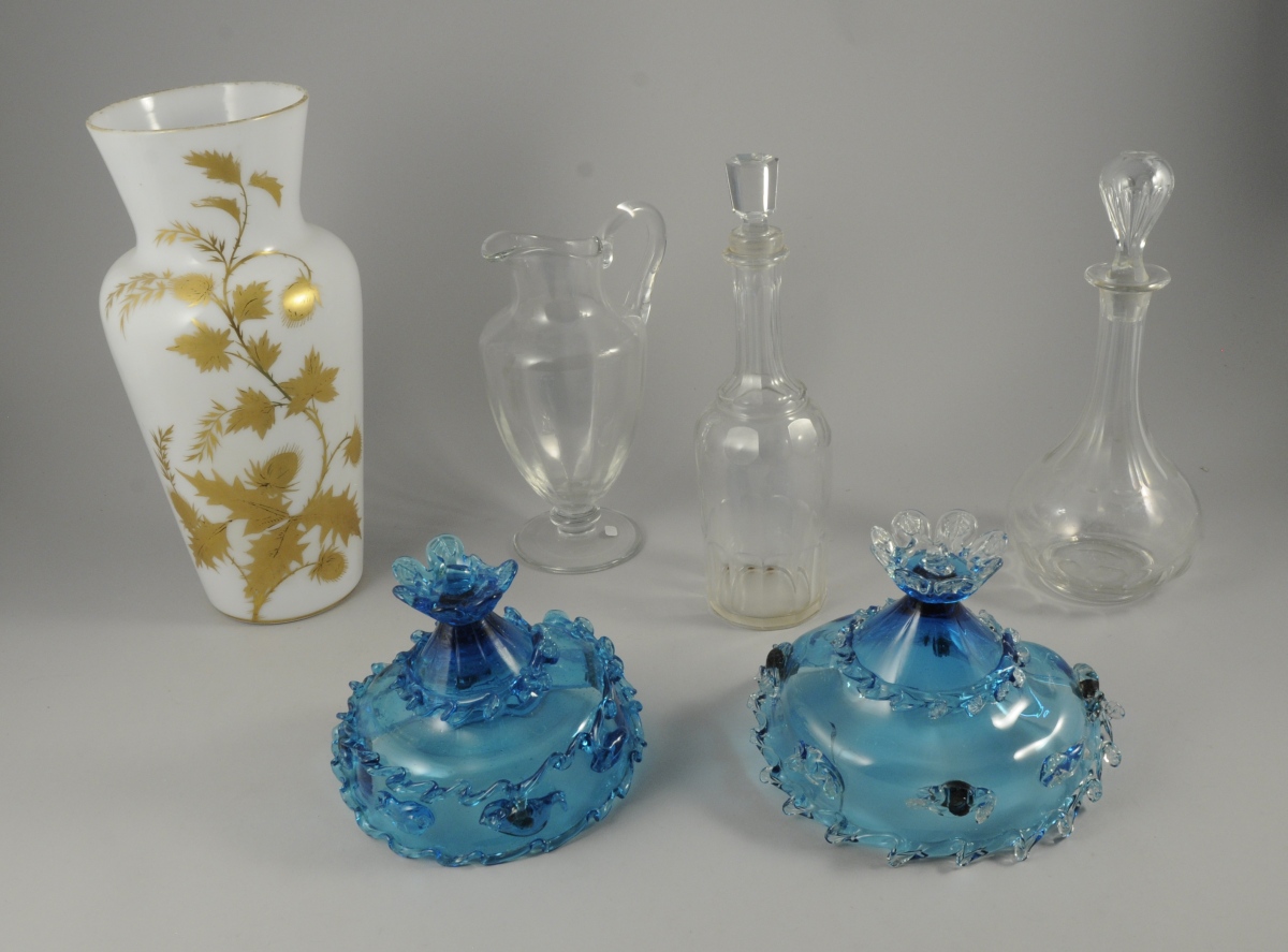 - VASE opalescent blanc à décor or de fruits, feuillages et filets. Marqué "M" au revers. Haut. 35 cm.