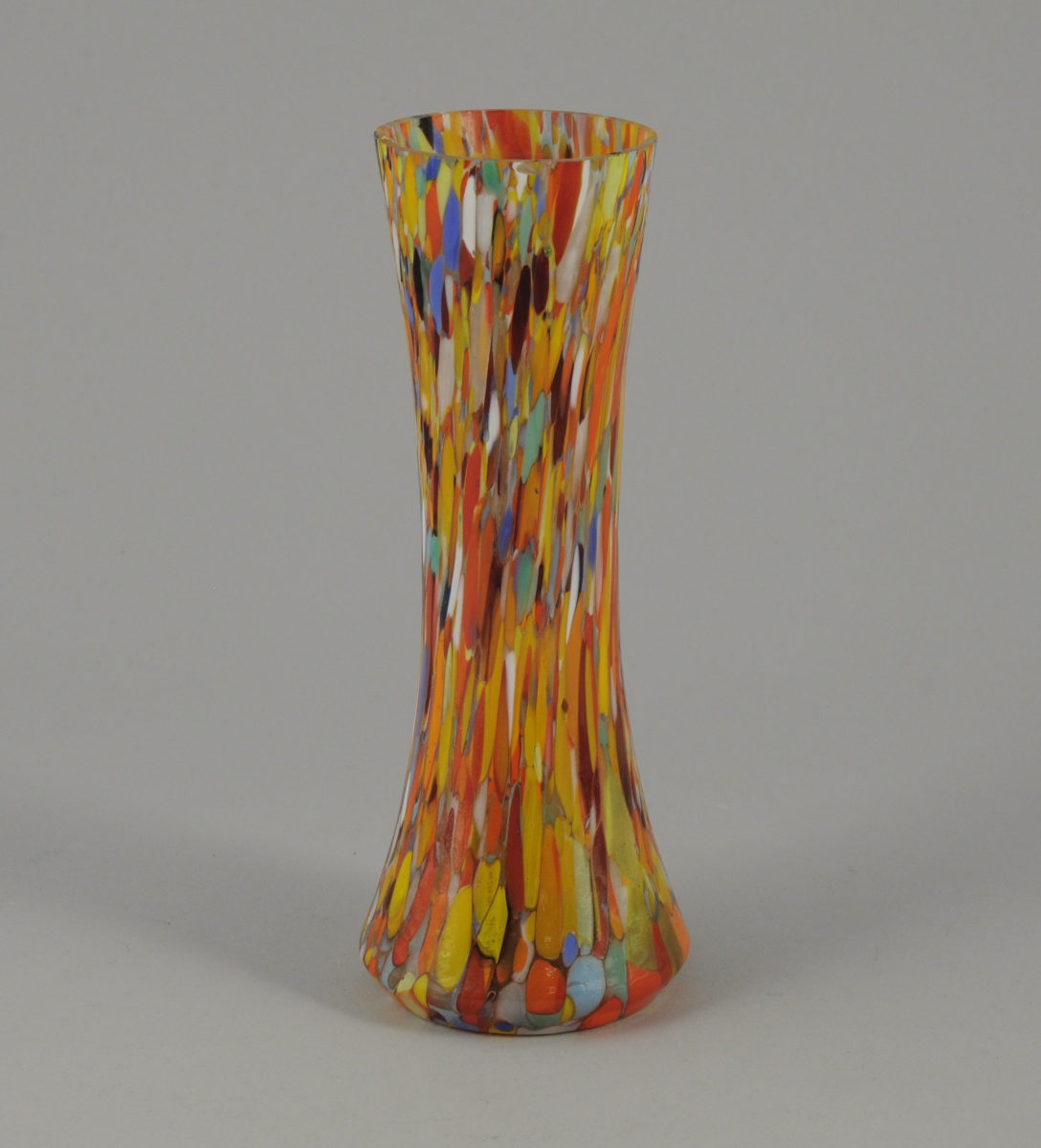 JOINT: VASE tubulaire en verre multicolore dans le goût de Clichy. Début XXème. Haut. 20 cm.