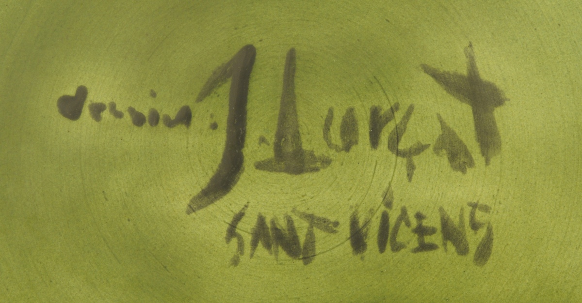 Jean LURÇAT (1892-1966). PLAT rond en faïence à fond flammé brun-orangé. Décor au centre d'un profil d'homme. Marqué au dos "dessin J. Lurçat, Saint-Vicens". Diam. 40 cm.