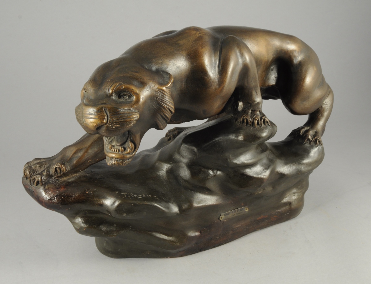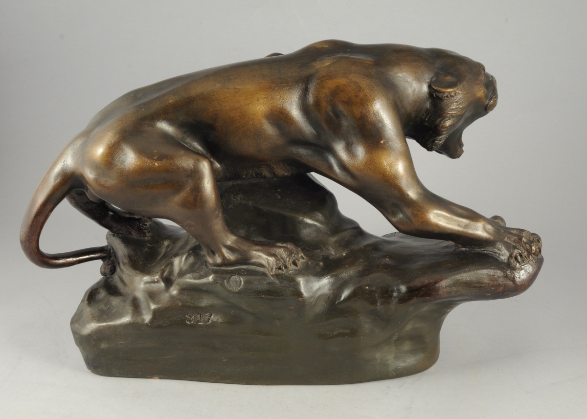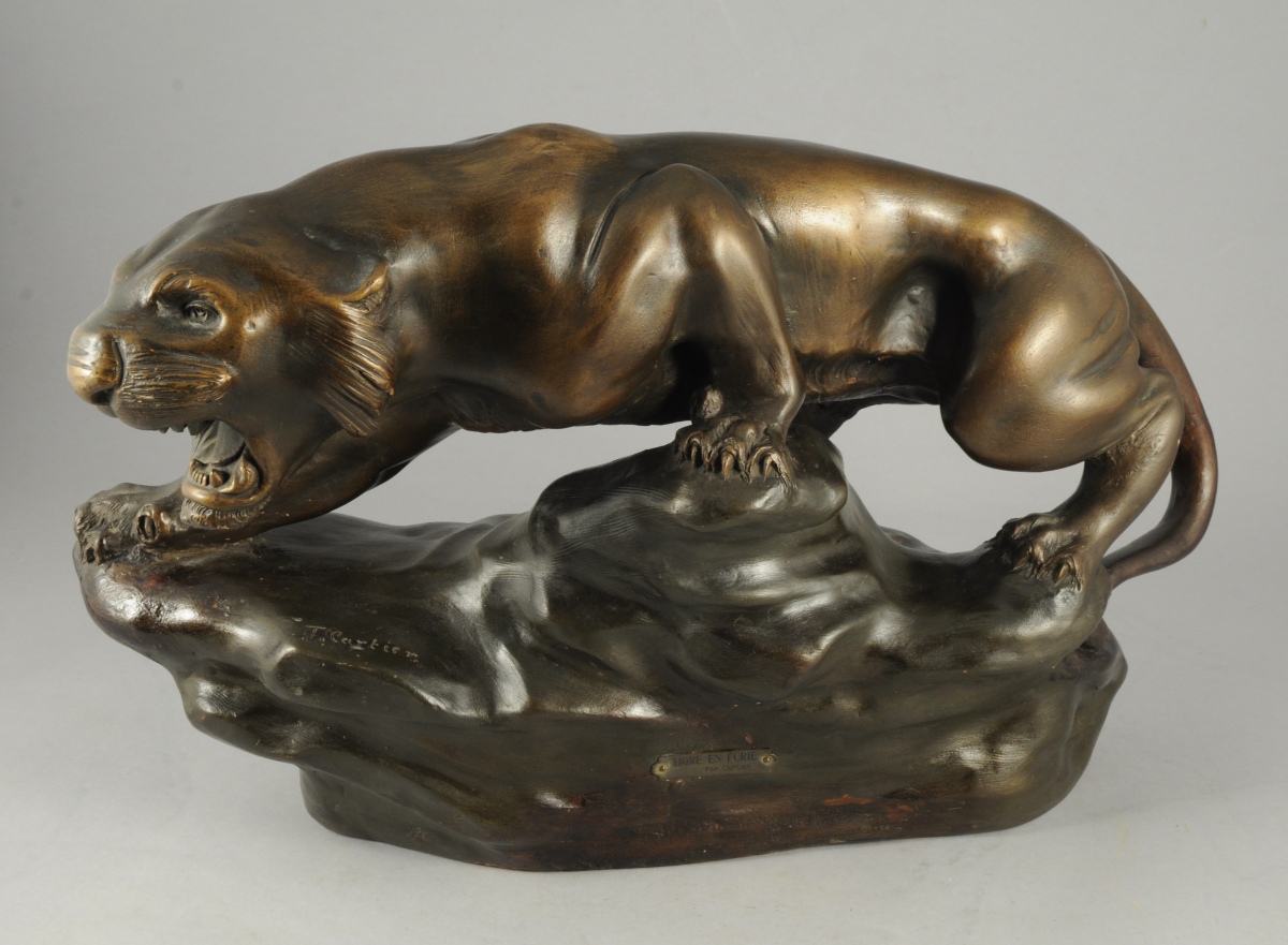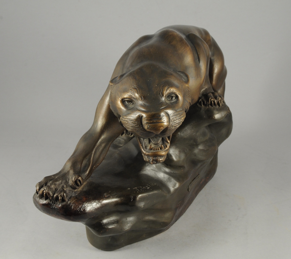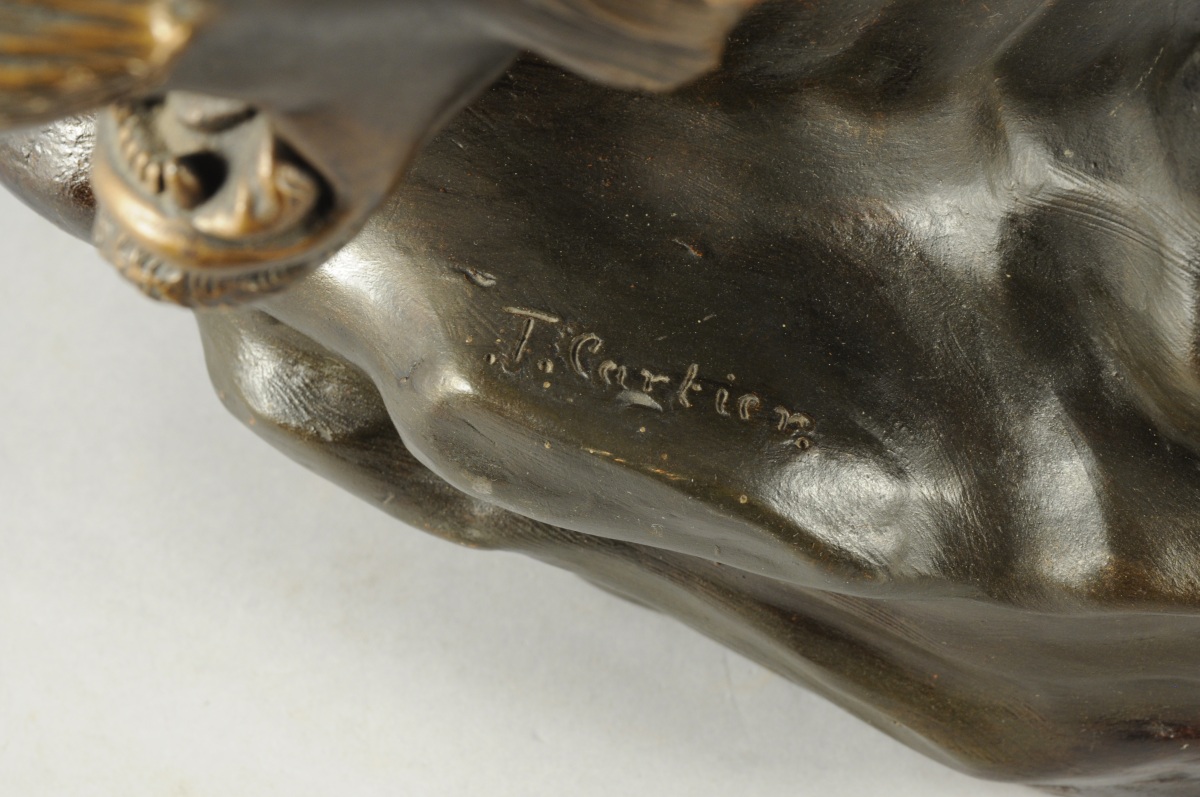 Terre cuite patinée bronze, signée, cachetée et marquée 817.