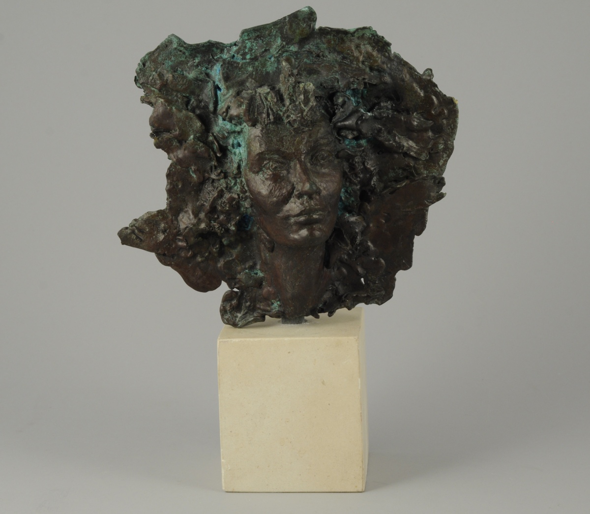 - TÊTE de femme. Bronze à patine brune. Haut. 18, Larg. 19, Prof. 5,5 cm.
