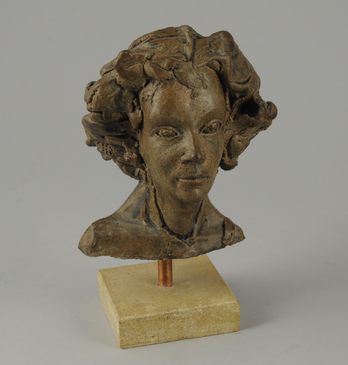 - TÊTE de femme. Terre cuite. Haut. 12, Larg. 10, Prof. 11 cm.