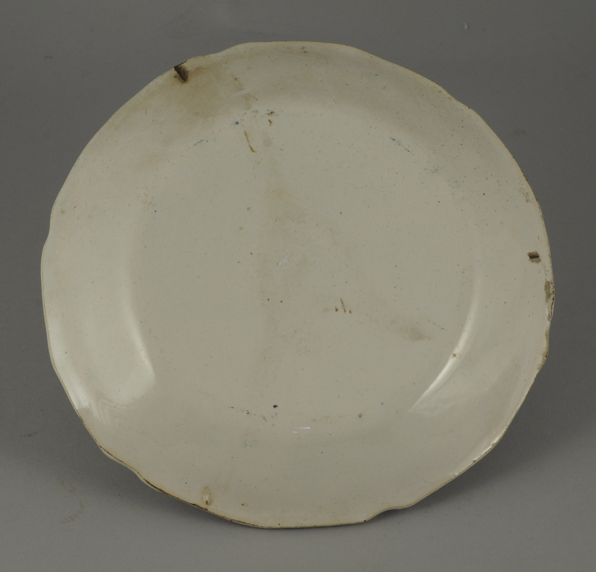 CENTRE. ASSIETTE à bord contourné en faïence à décor polychrome des Trois Ordres couronnés, d'une fleur de lys et de filets jaunes et bleus. XIXème. Diam. 23 cm.