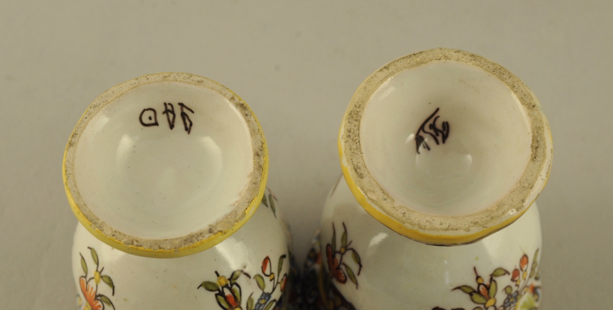 Marque peinte au revers du support "Lorient". Monogramme non identifié au revers des coquetiers.