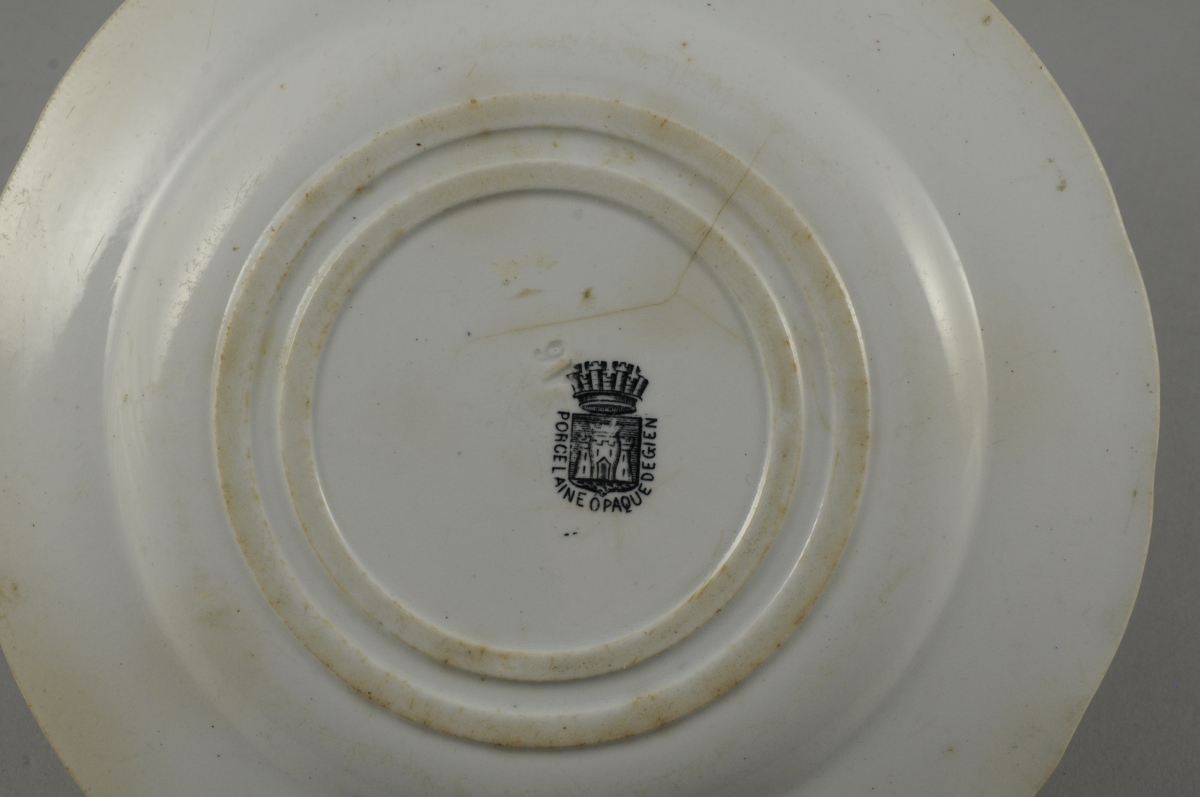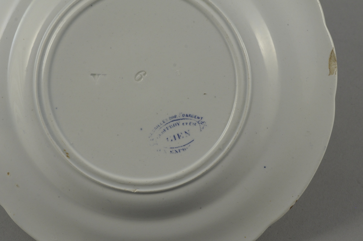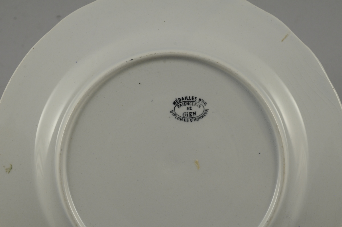GIEN. LOT de SIX ASSIETTES en faïence fine à décor imprimé comprenant: