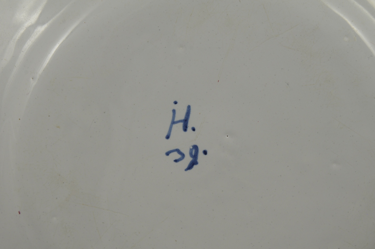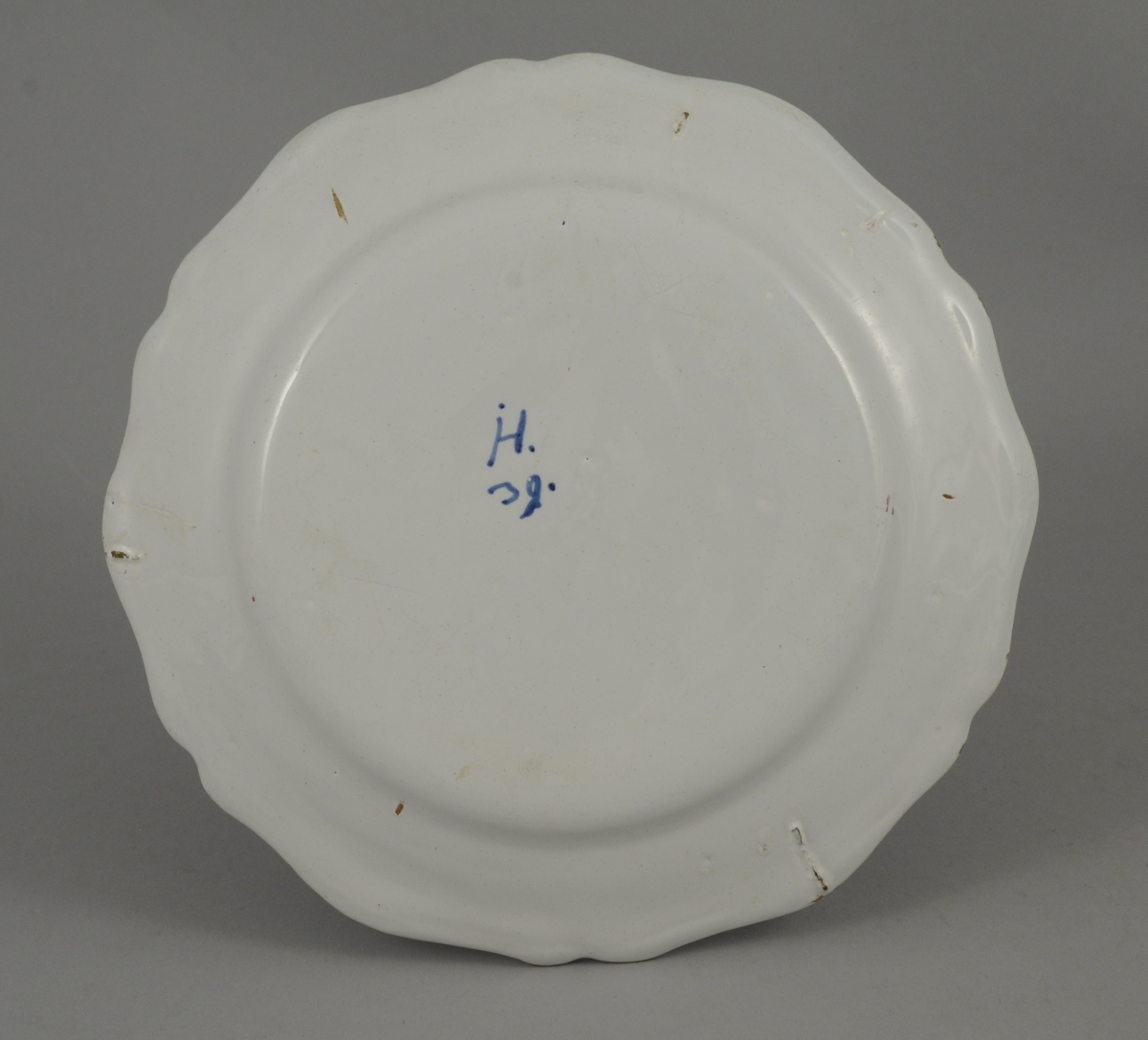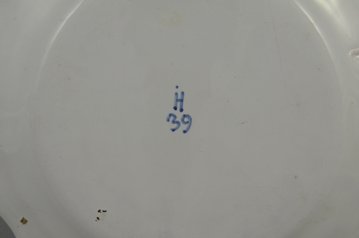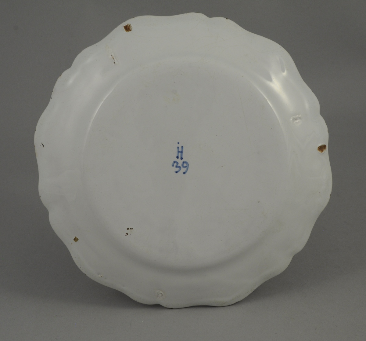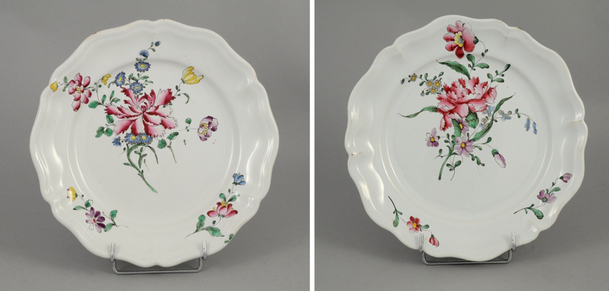 STRASBOURG. Paire d'ASSIETTES à bord contourné, décor polychrome d'un bouquet de fleurs décentré et sur l'aile de fleurettes. Manufacture de Joseph Hannong. Marquée "JH 39" et "JH 60".