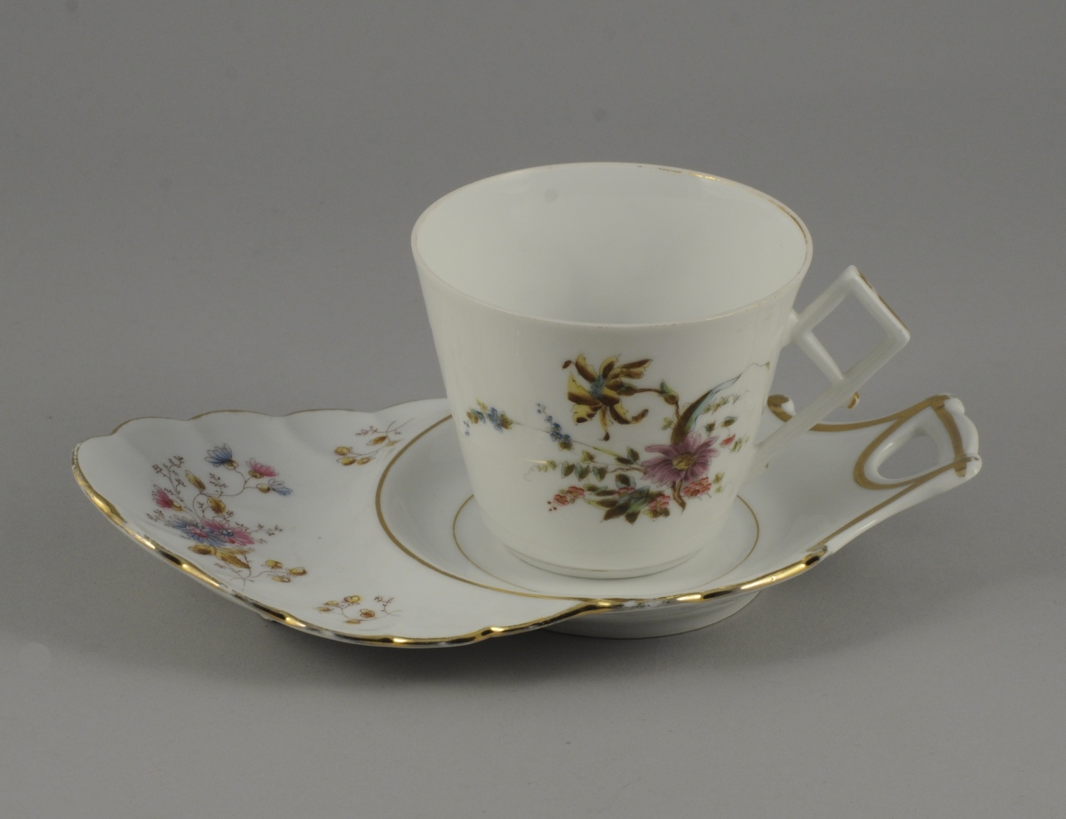 Sous-tasse: Long. 24, Larg. 14 cm. (usures à l'or)