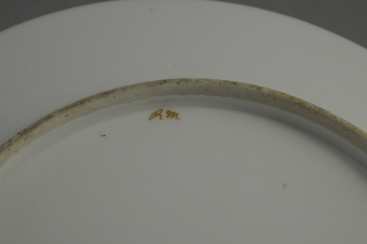 Certaines pièces portent la marque d'atelier "J" en creux et la marque du peintre, à l'or, "Rm".