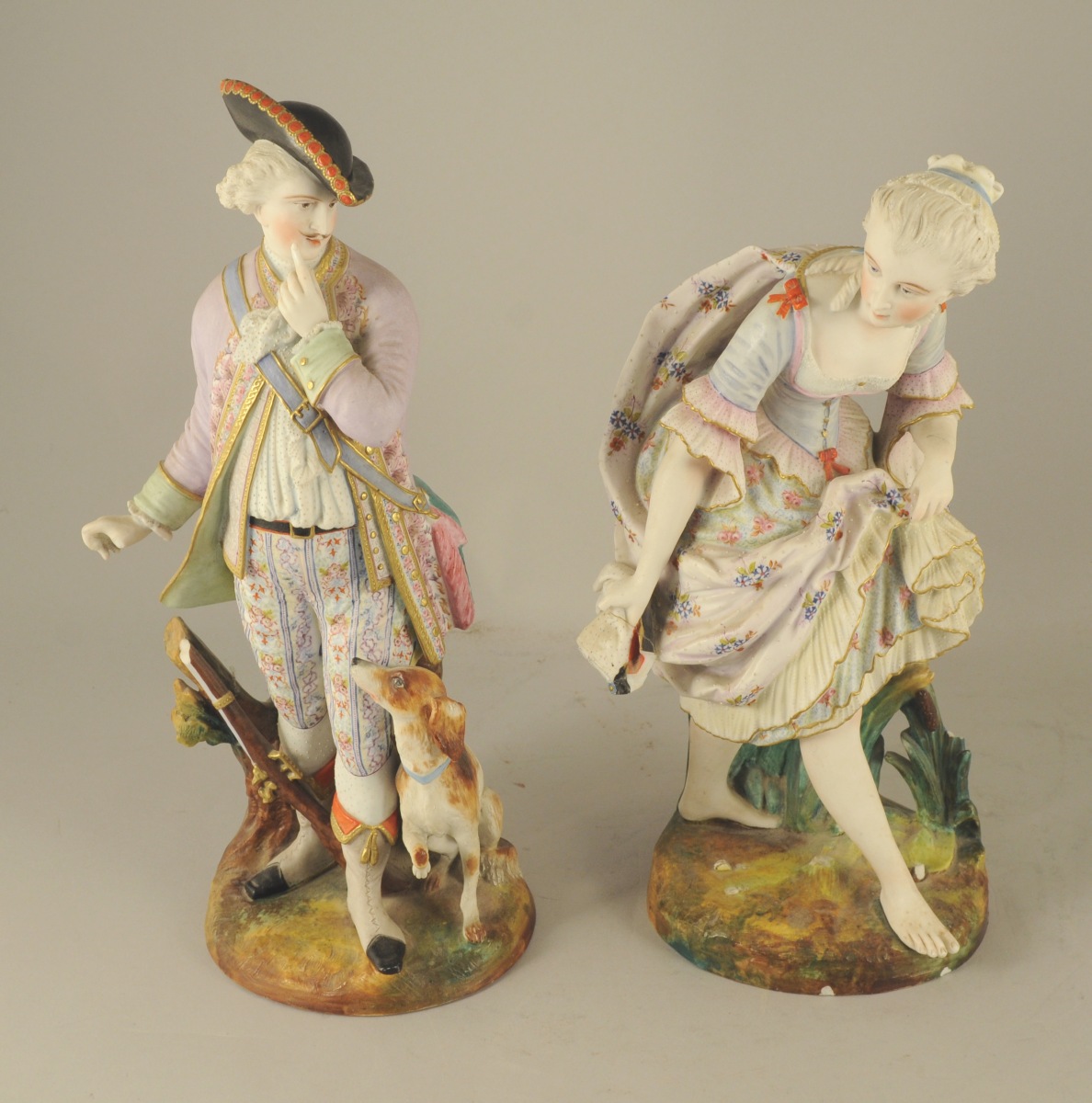COUPLE de PERSONNAGES en porcelaine polychrome.