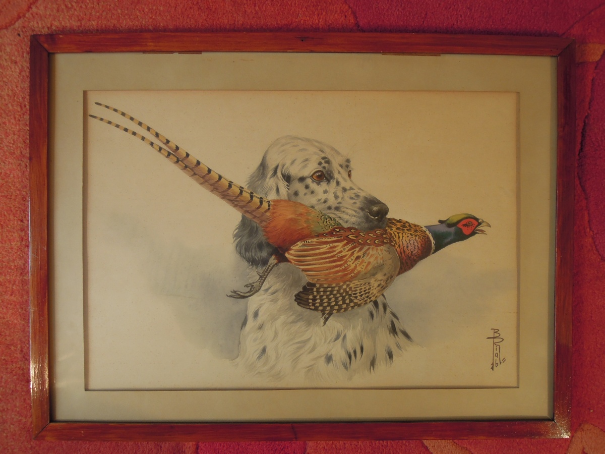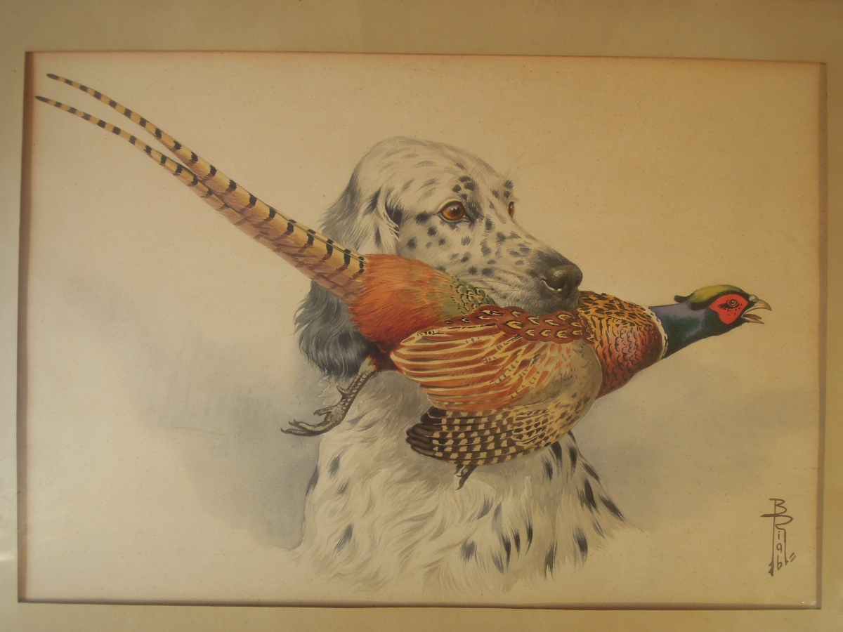 Setter anglais tenant un faisan.