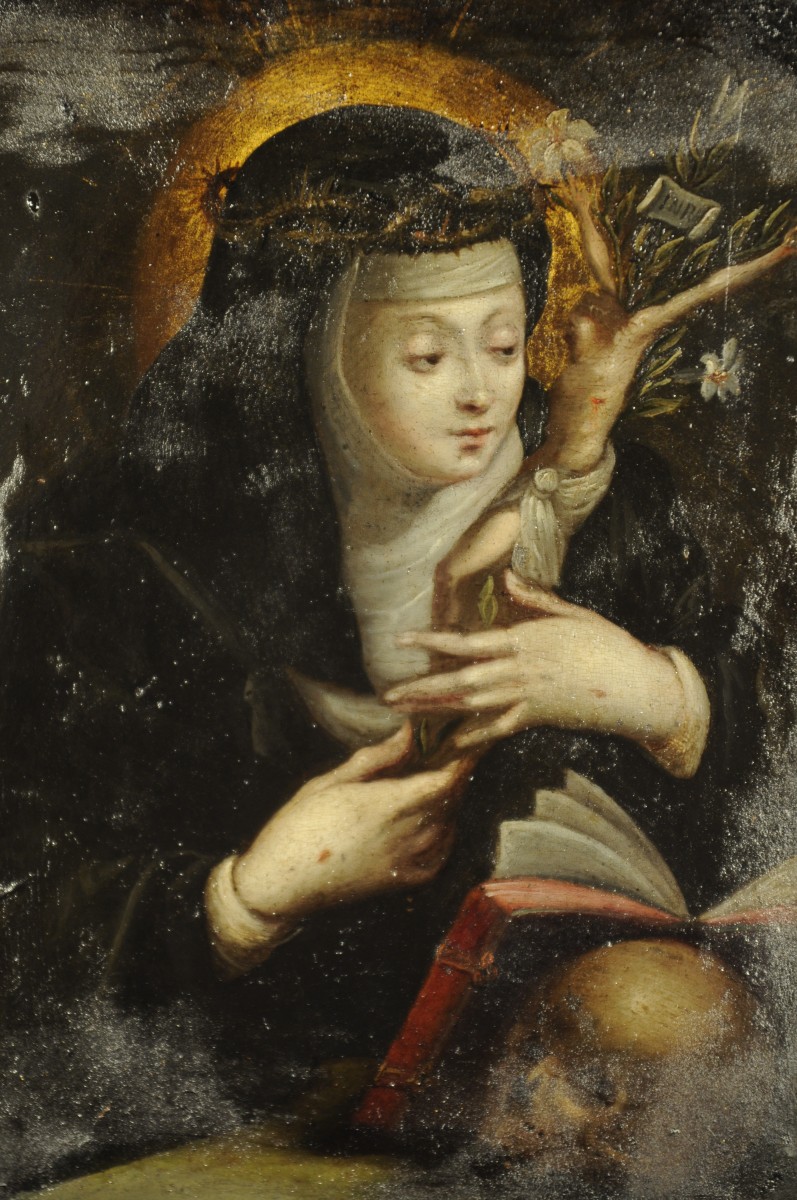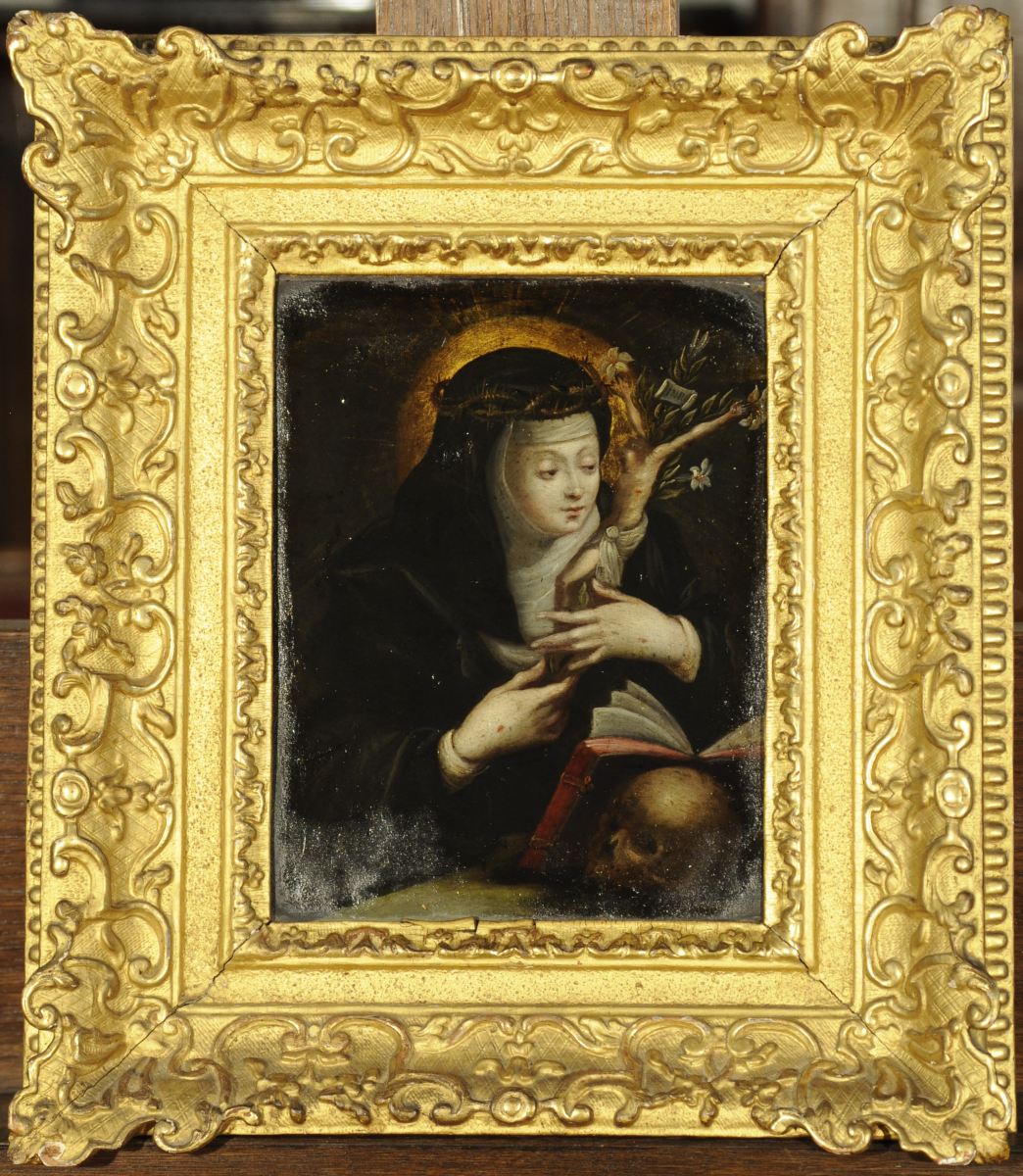 École EUROPÉENNE ANCIENNE.Sainte Thérèse d'Avila.Huile sur cuivre.31,5 x 16 cm.