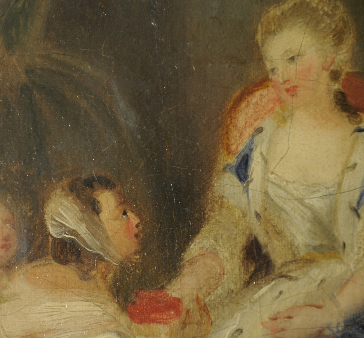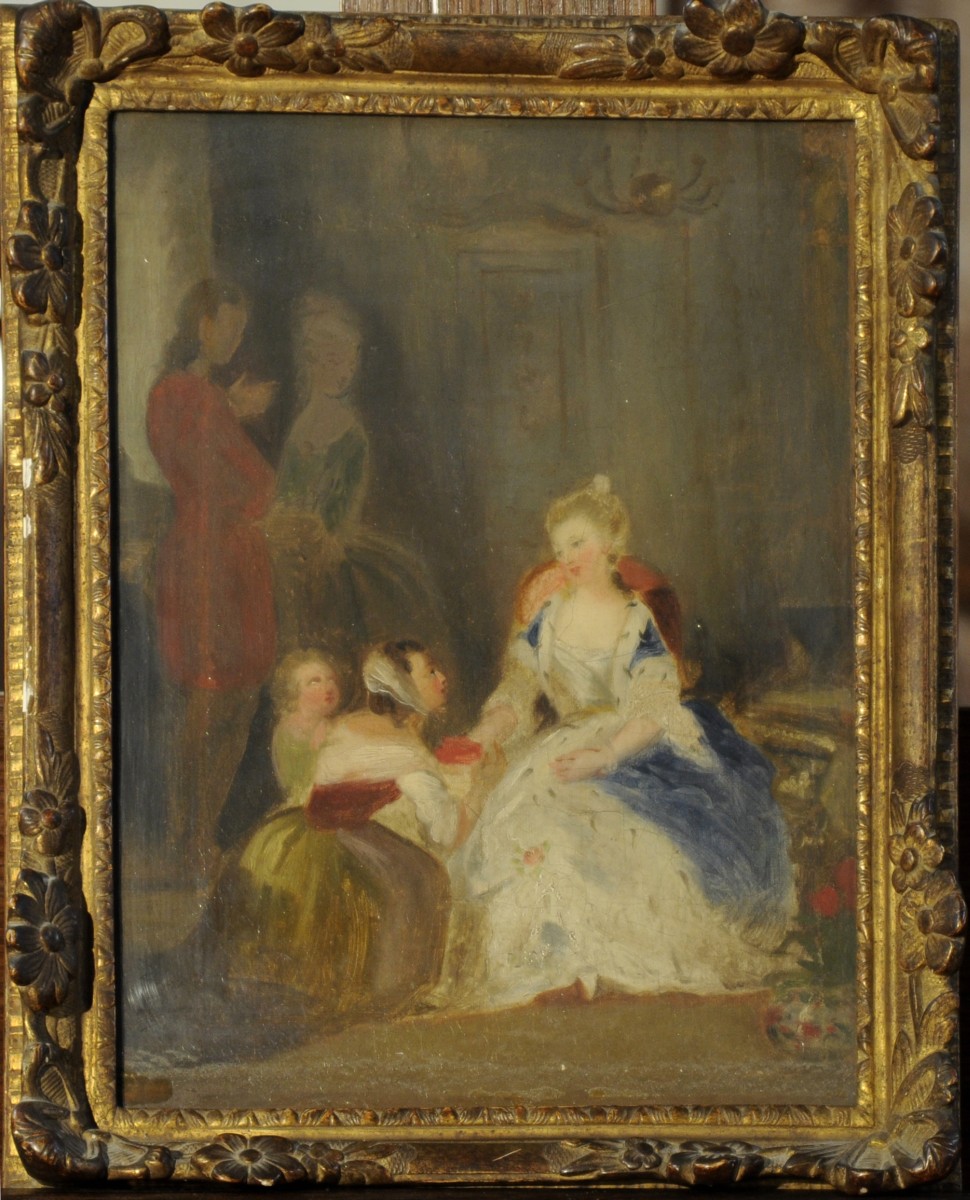 Huile sur toile. Dans un cadre en bois doré de style Louis XV.